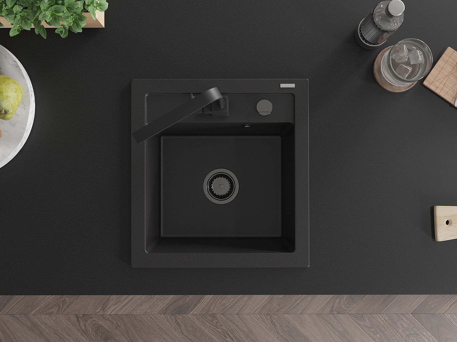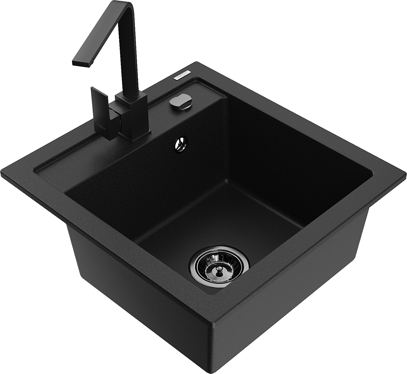 Mexen Vito granito plautuvė 1-skyrelio su virtuvės maišytuvu Rita, juodas - 6503-77-670300-70-B