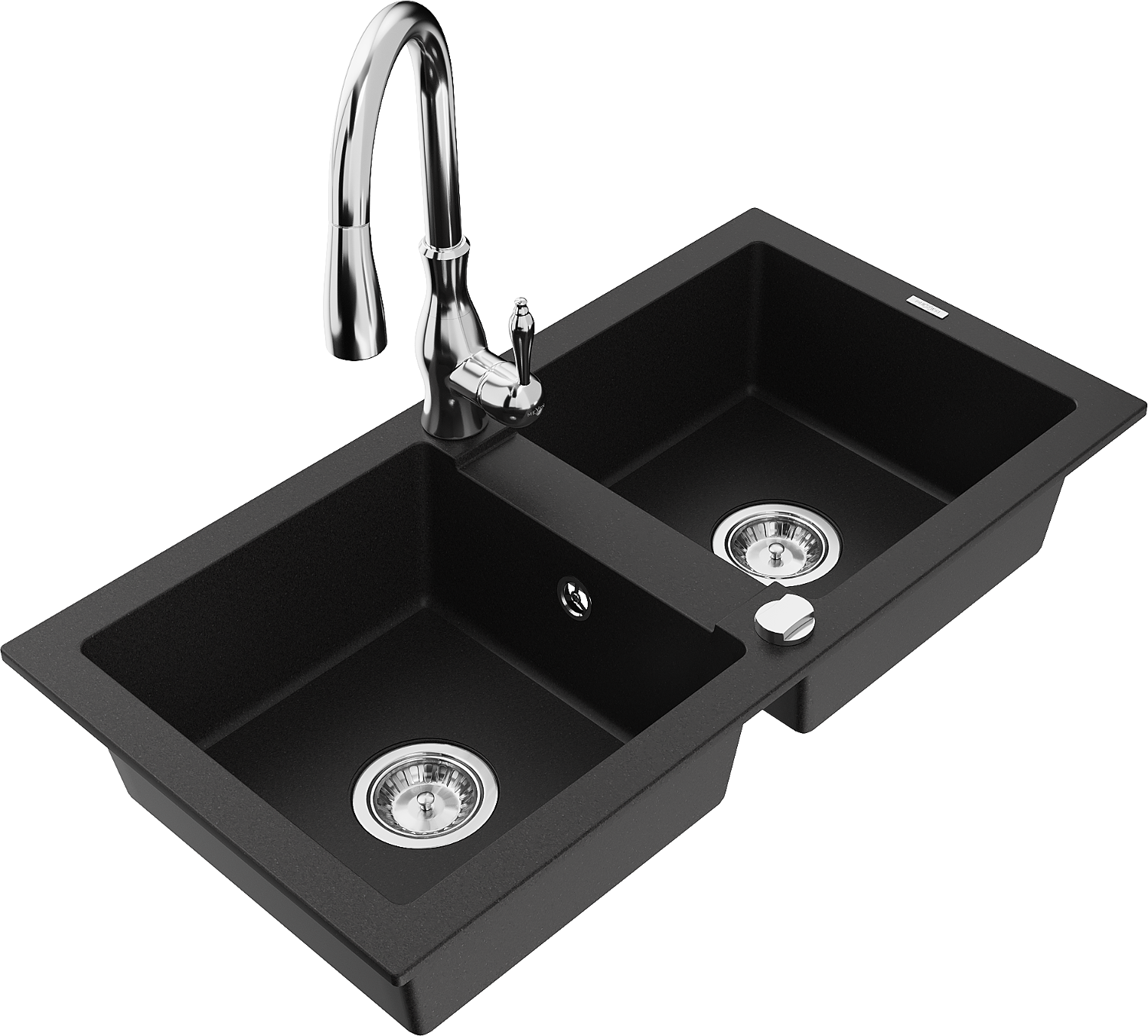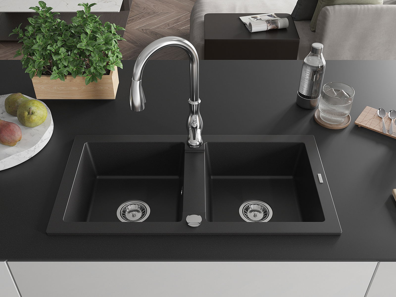 Mexen Mario granito plautuvė 2-jų skyrių su virtuviniu maišytuvu Savita, juodas - 6504-77-672601-00
