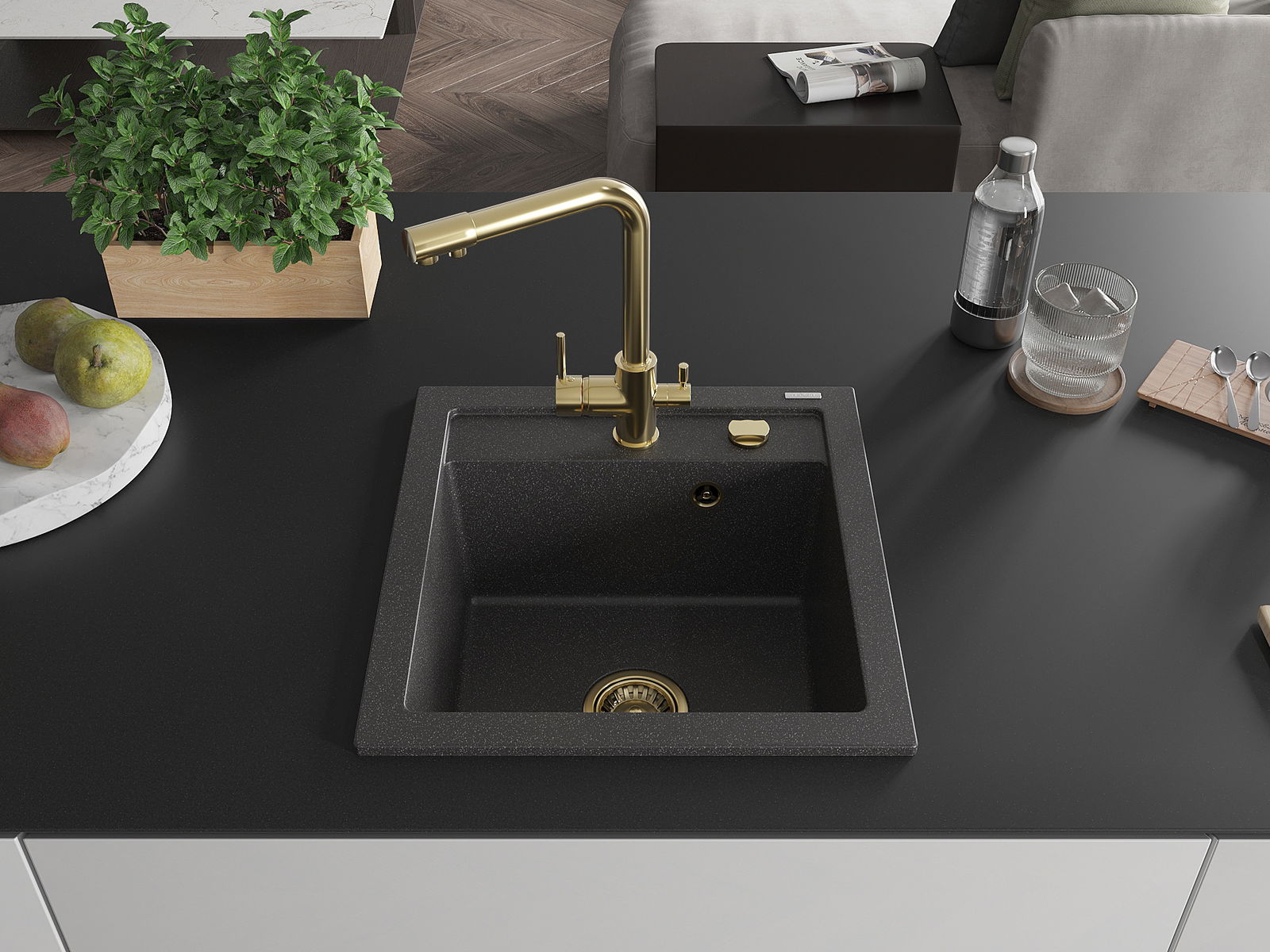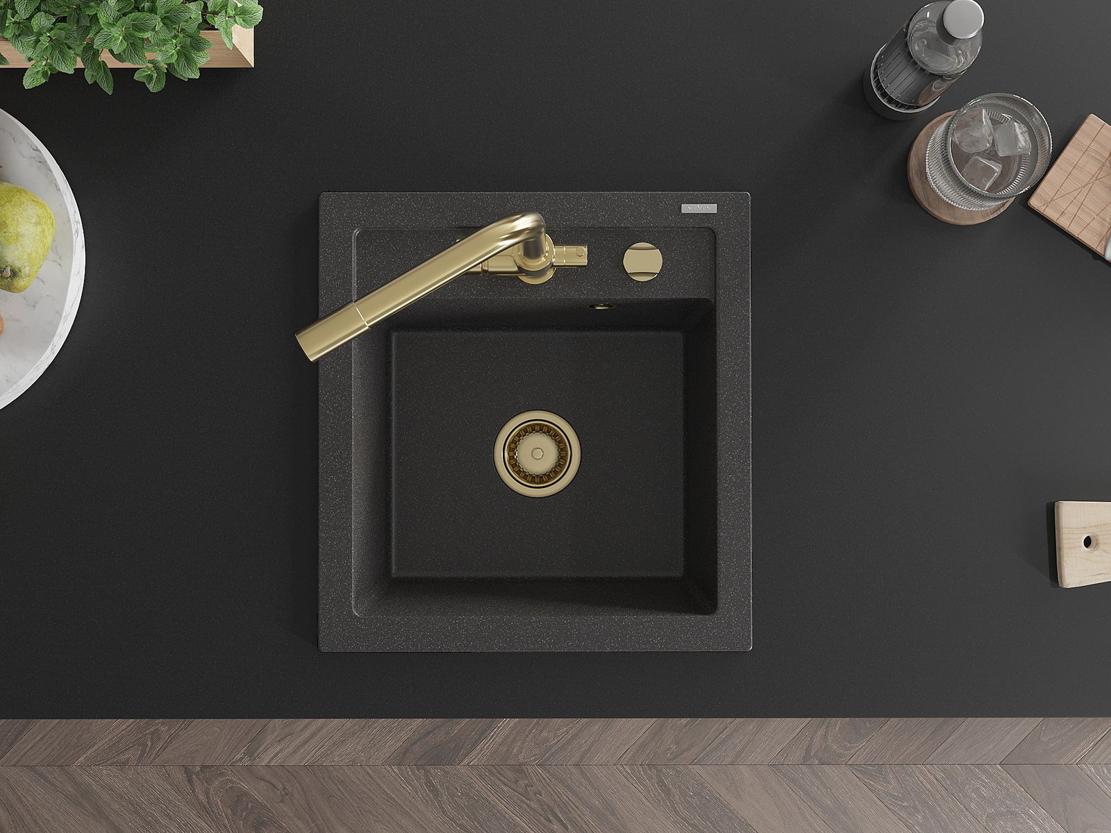 Mexen Vito granito plautuvė 1 skyriumi su virtuvės maišytuvu Duero, juoda taškuota - 6503-76-671600-50