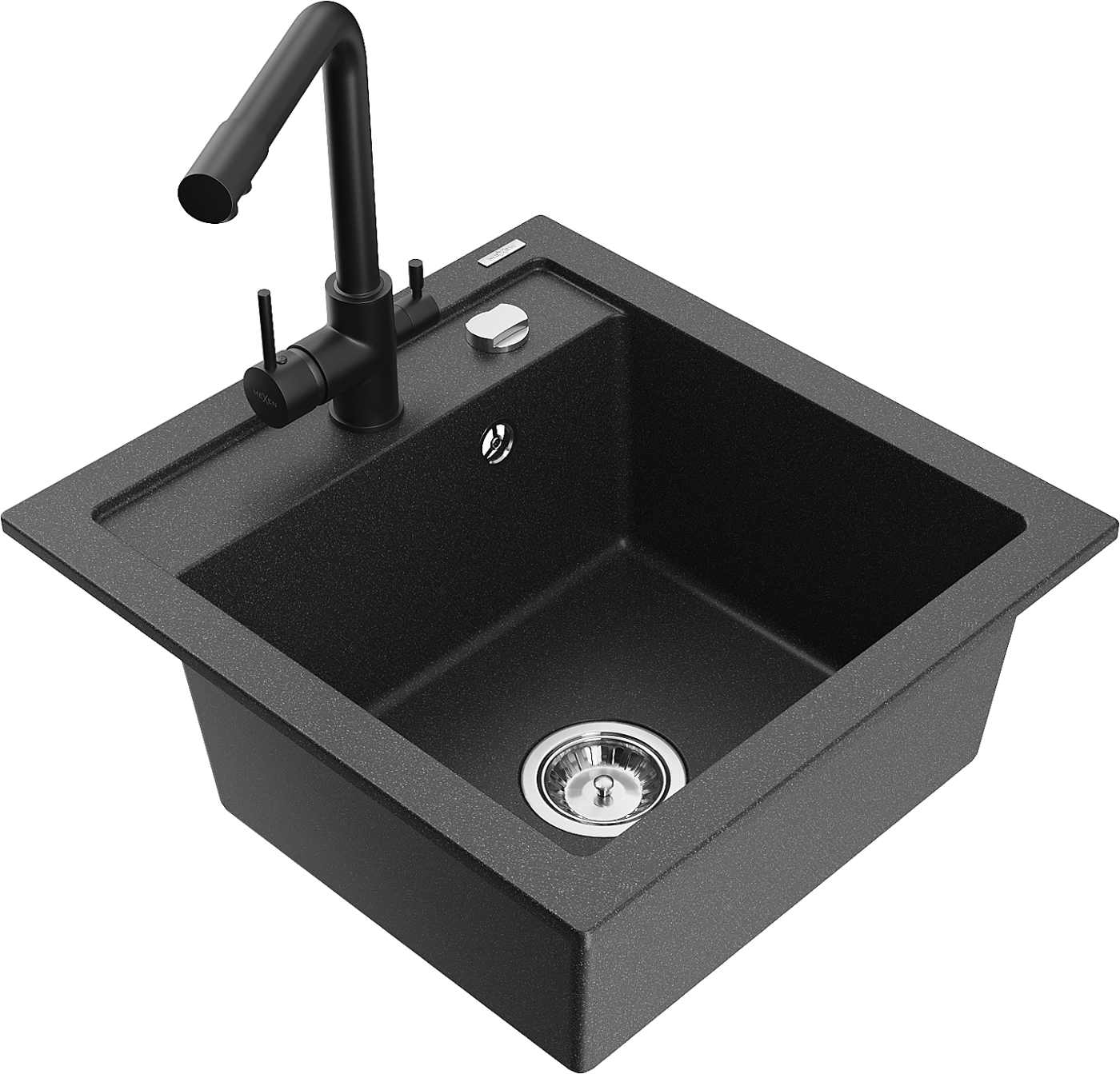 Mexen Vito vienos dubenėlės granito kriauklė su virtuviniu maišytuvu Duero, juodas dėmėtas - 6503-76-671600-70