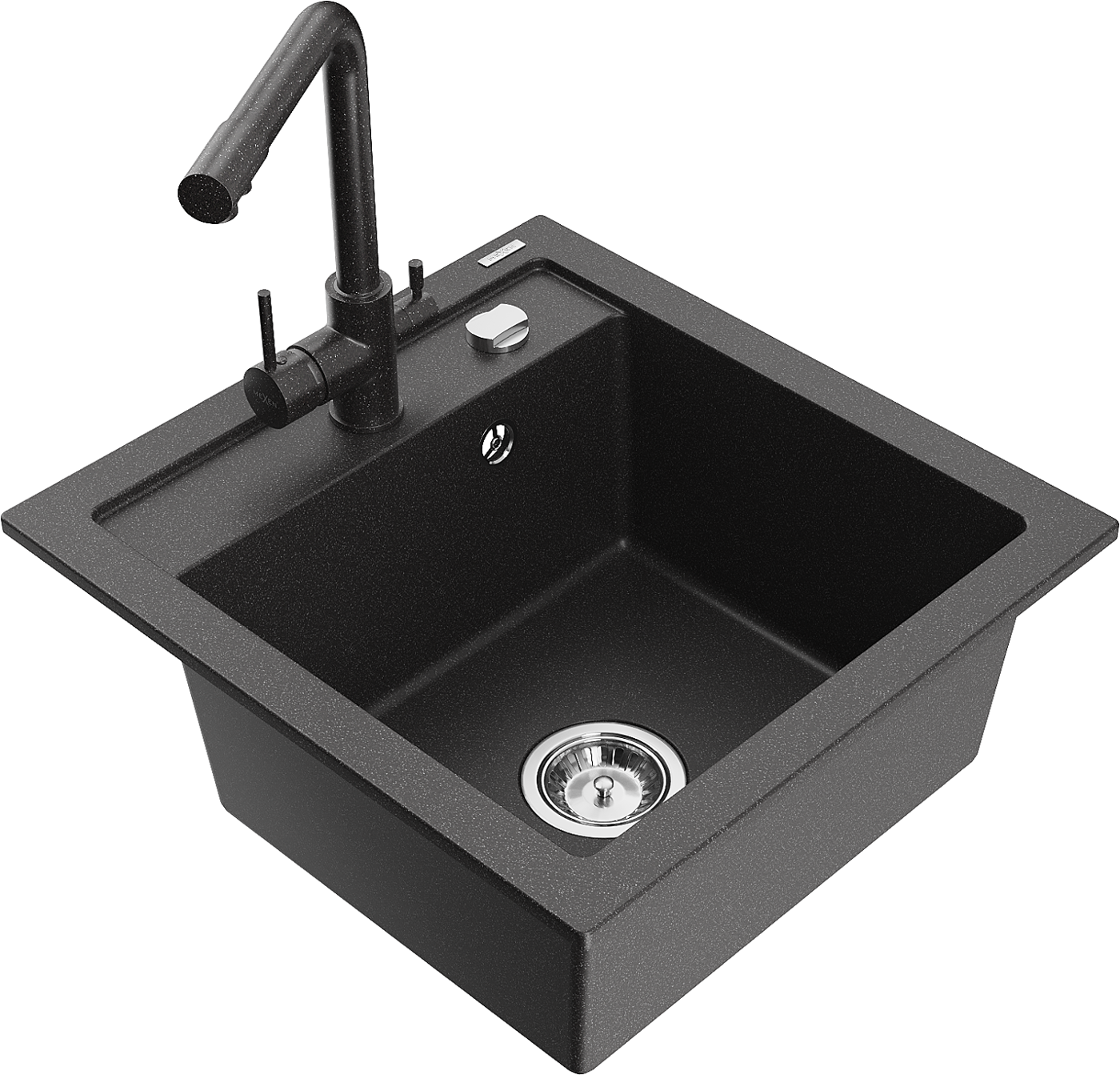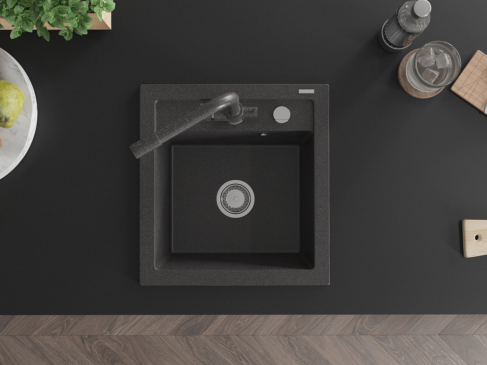 Mexen Vito granitinė vienos plautuvė su Duero virtuviniu maišytuvu, juodas dėmėtas - 6503-76-671600-76