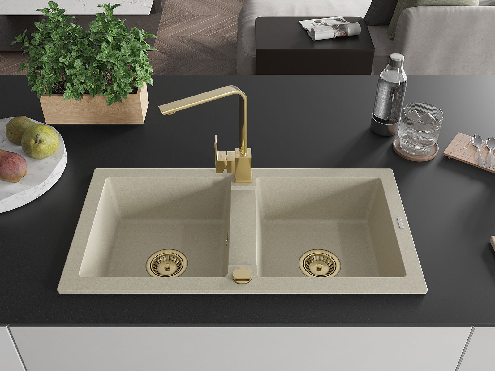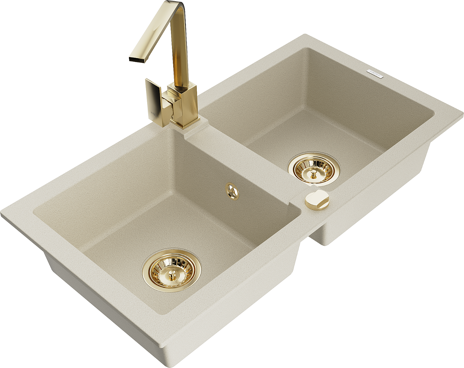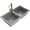 Mexen Mario granitinė plautuvė dviejų skyrių su virtuviniu maišytuvu Rita, smėlio spalvos - 6504-69-670300-50