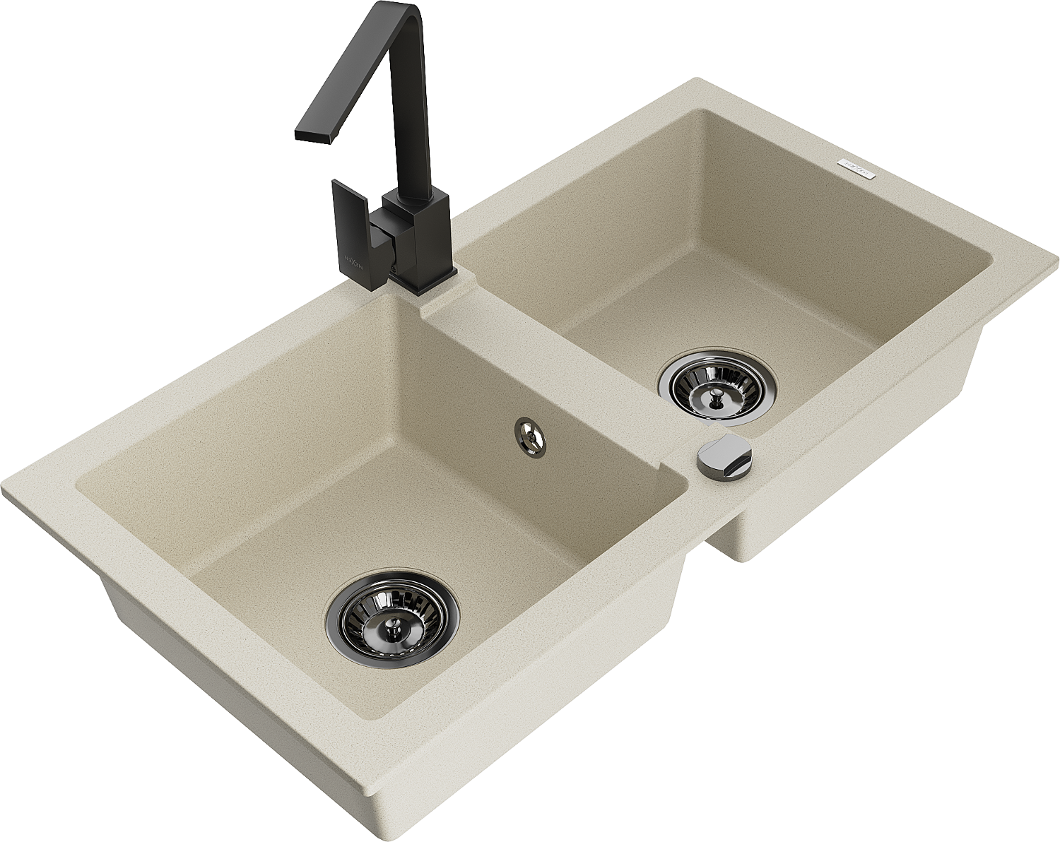 Mexen Mario granitinis dviejų skyrių virtuvės kriauklė su maišytuvu Rita, smėlio - 6504-69-670300-70