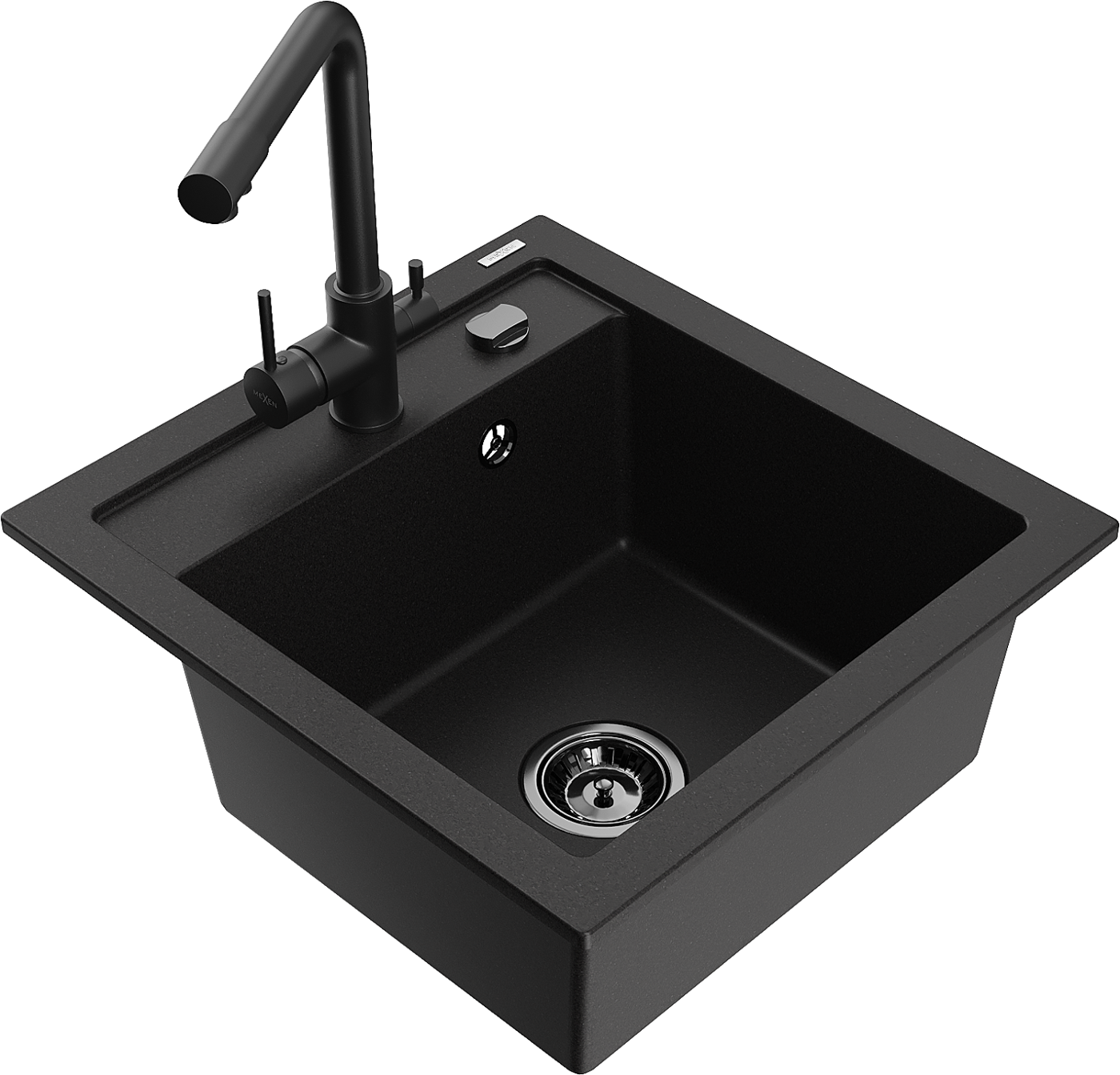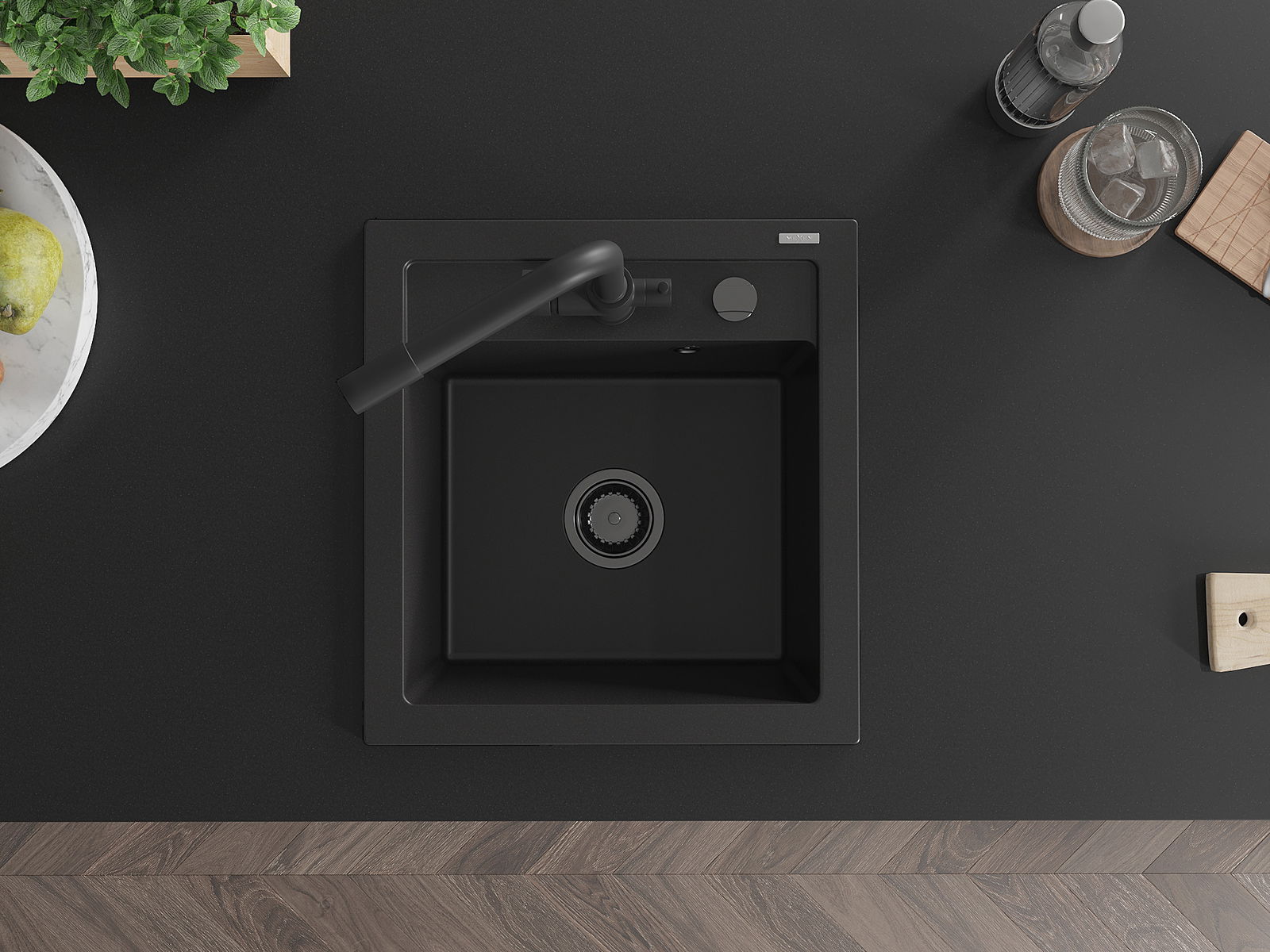 Mexen Vito vienos sekcijos granitinis plautuvas su virtuviniu maišytuvu Duero, juodas - 6503-77-671600-70-B