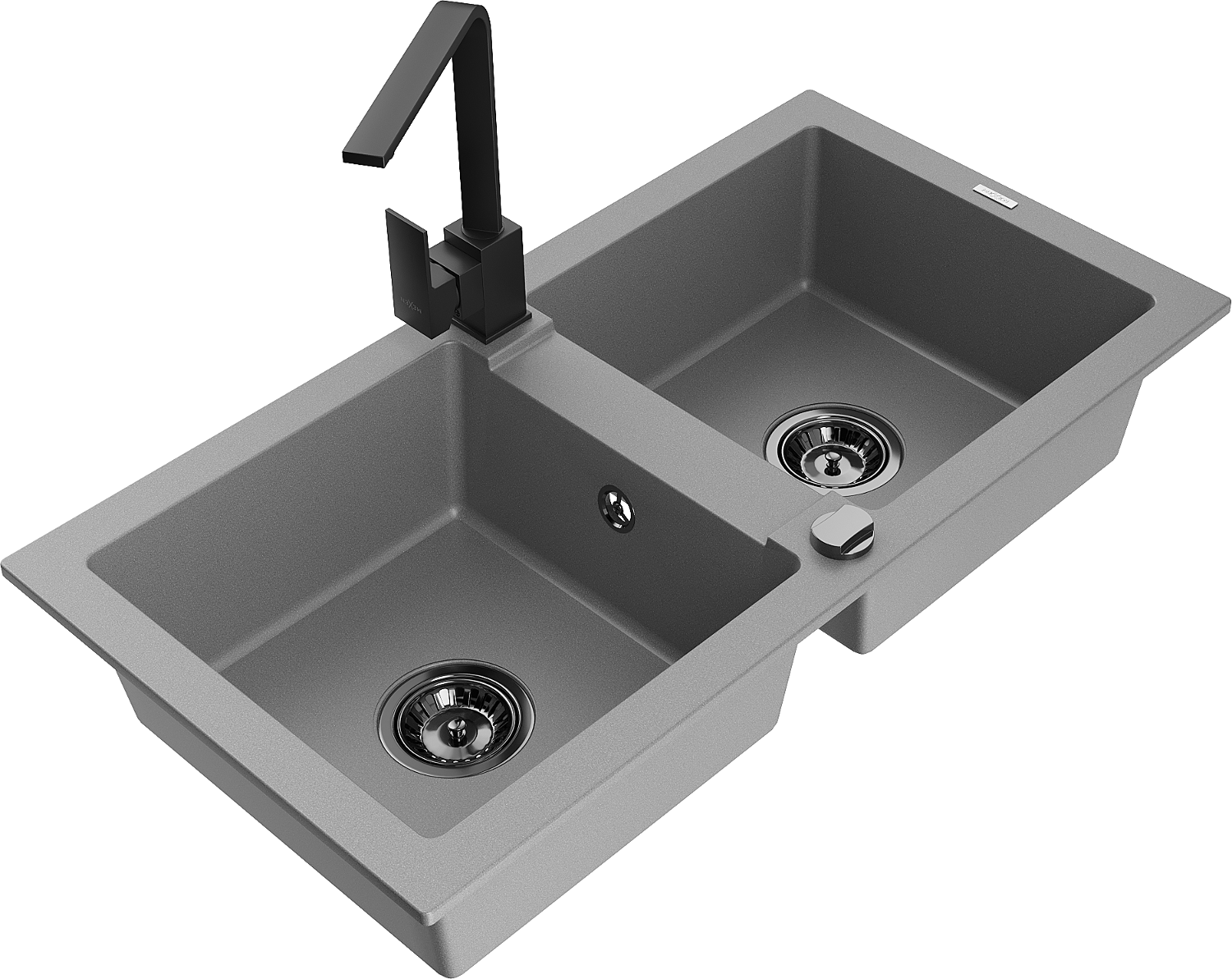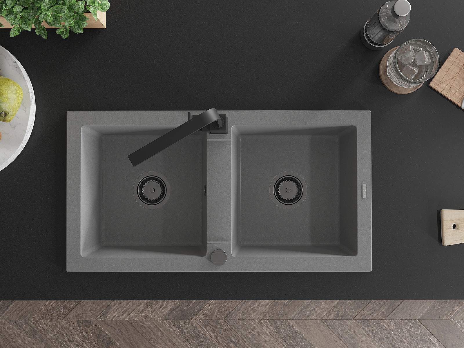 Mexen Mario granitinė dviejų skyrių kriauklė su Rita maišytuvu, pilka - 6504-71-670300-70-B