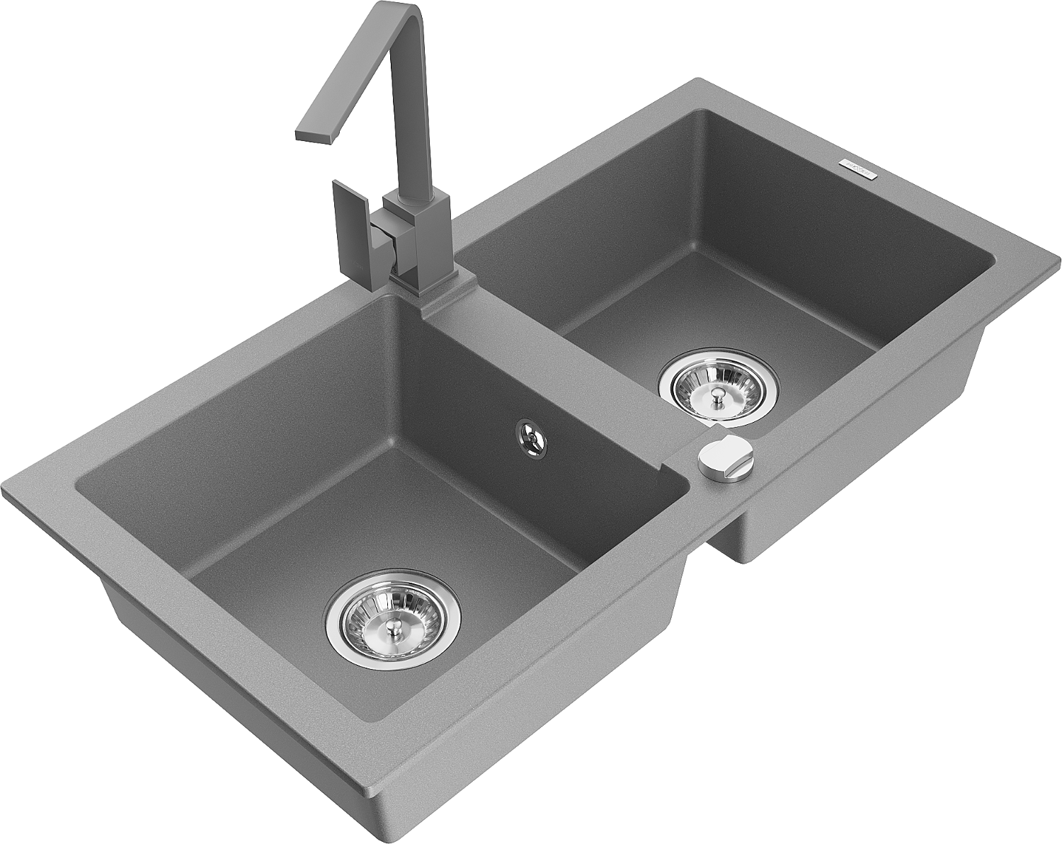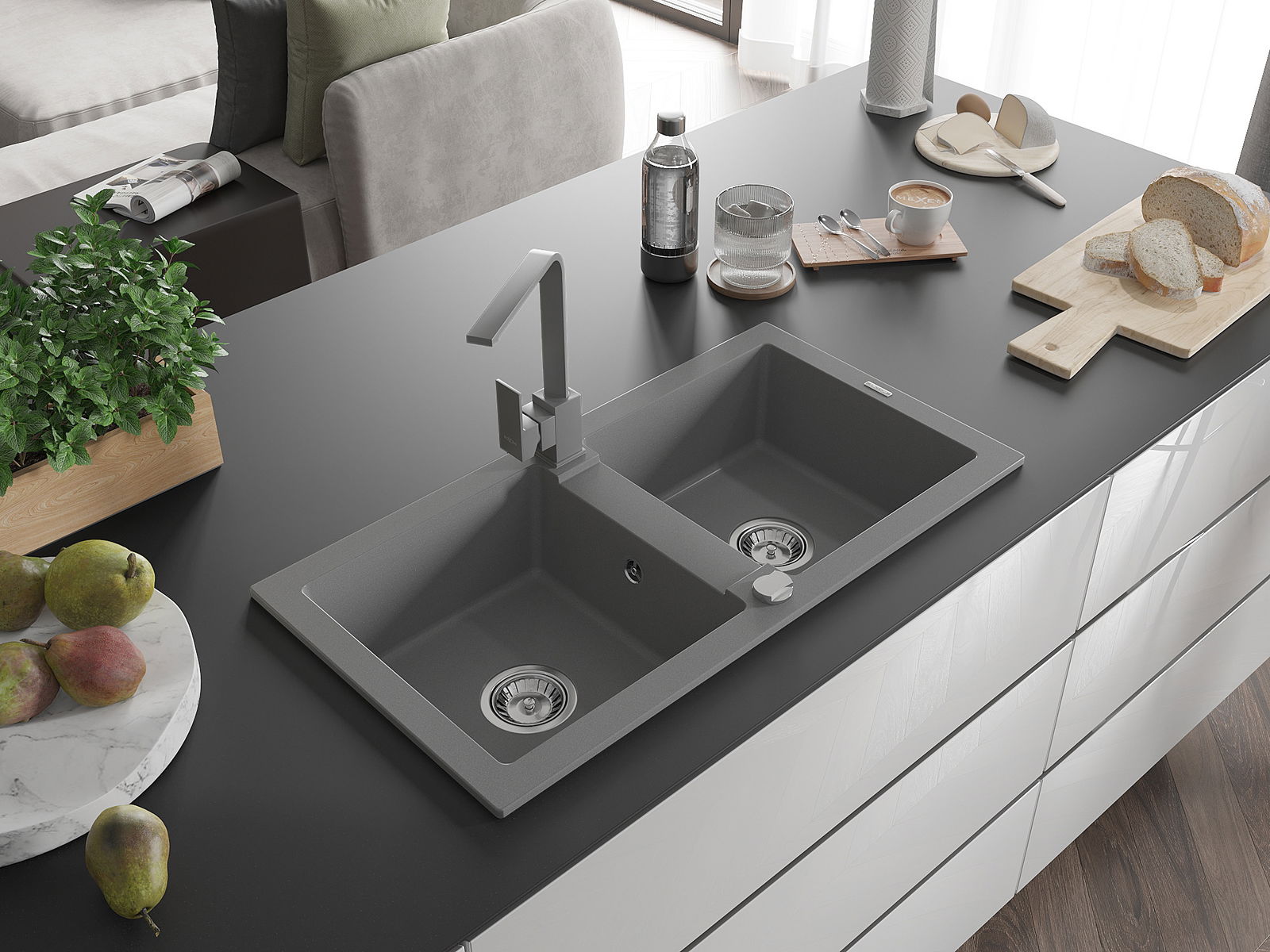 Mexen Mario granito plautuvė su dviem skyreliais ir virtuviniu maišytuvu Rita, pilka - 6504-71-670300-71