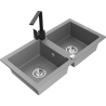 Mexen Mario granitinė dviejų skyrių plautuvė su virtuviniu maišytuvu Rita, juoda/sidabrinė metalo spalva - 6504-73-670300-70