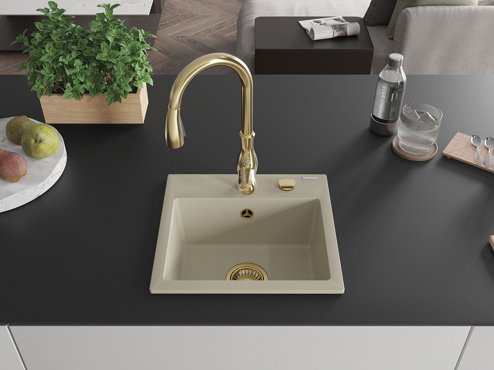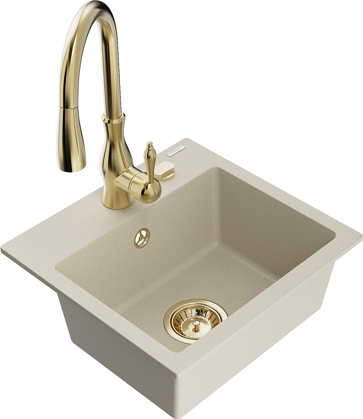 Mexen Milo granitinis vienaaukštis plautuvas su virtuviniu maišytuvu Savita, smėlio spalvos - 6505-69-672601-50