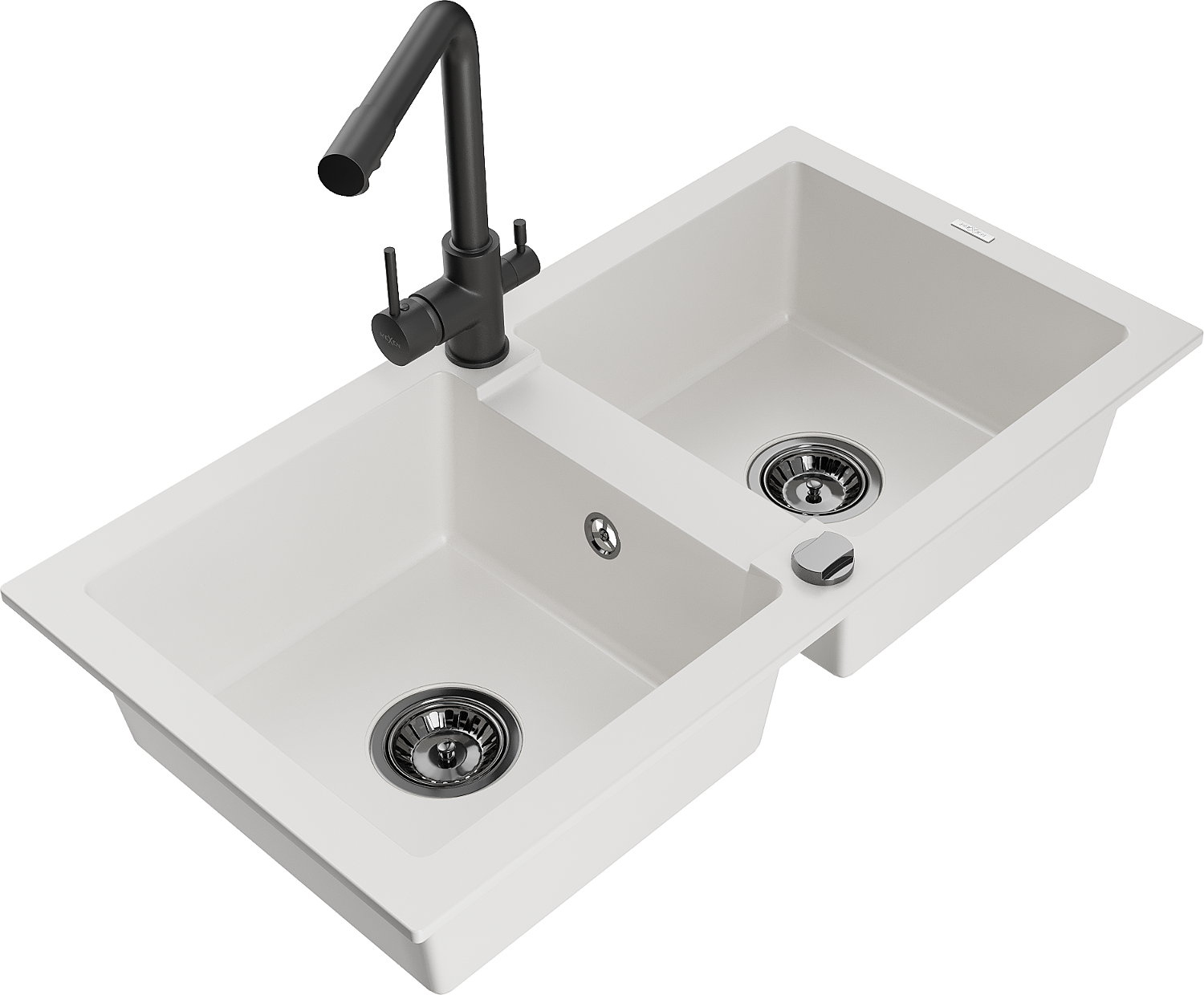 Mexen Mario granito plautuvė, dviejų skylių, su virtuvės maišytuvu Duero, balta - 6504-20-671600-70