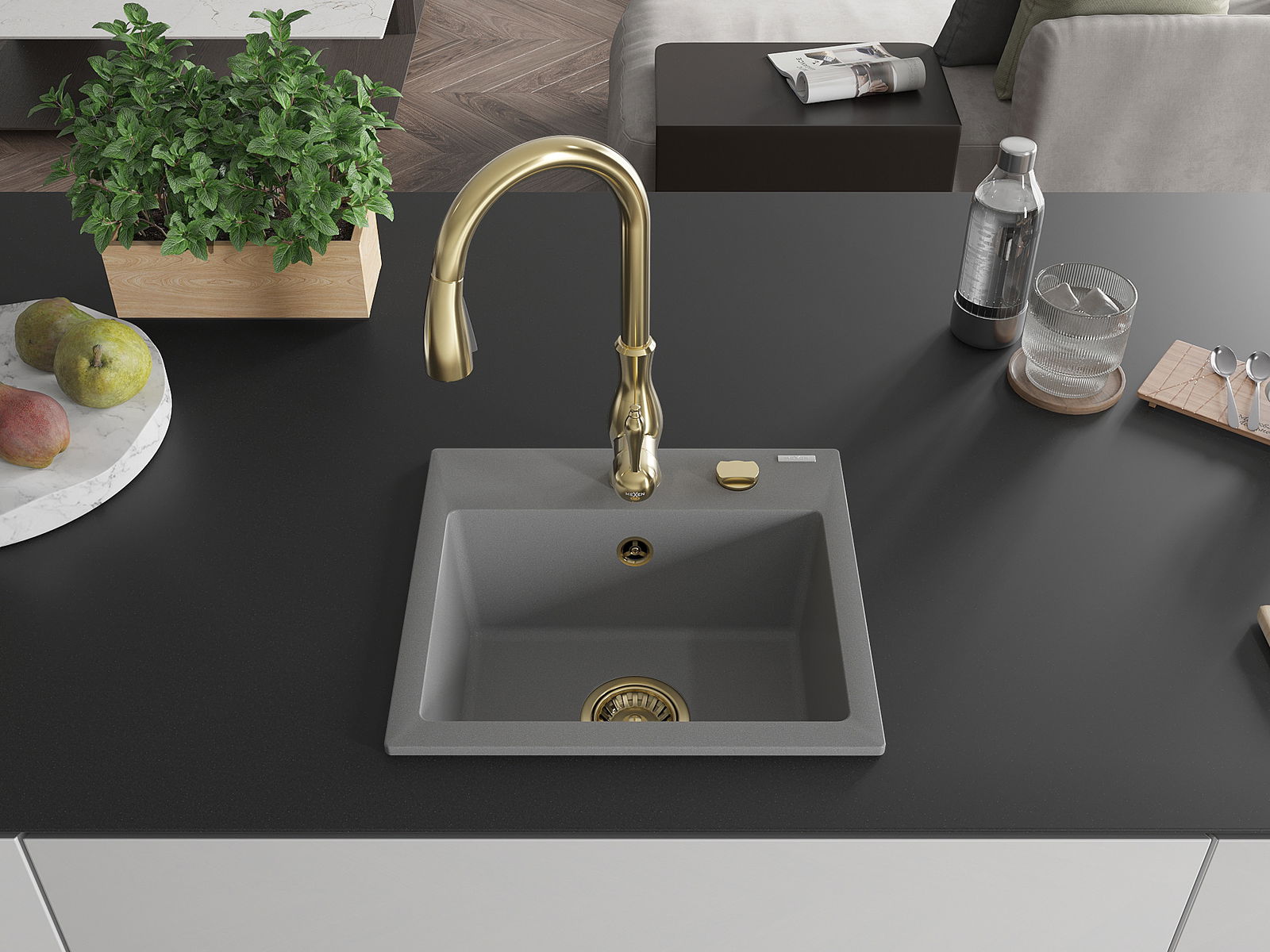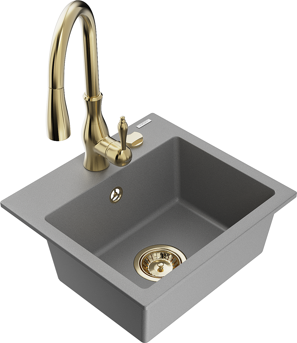 Mexen Milo vienos dalies granito plautuvė su virtuviniu maišytuvu Savita, pilka - 6505-71-672601-50