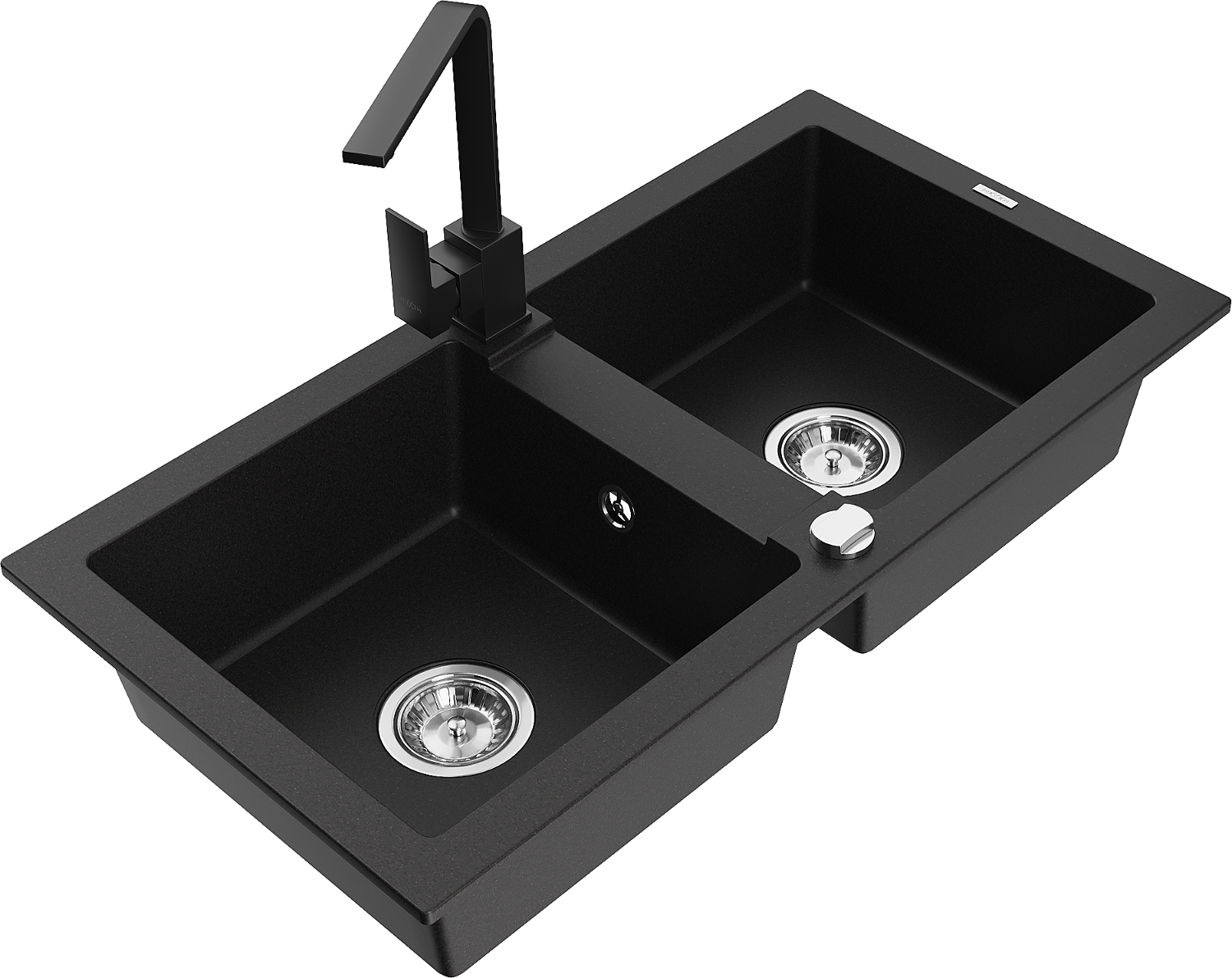 Mexen Mario granitinė dviejų skyrių plautuvė su Rita virtuvės maišytuvu, juoda - 6504-77-670300-70