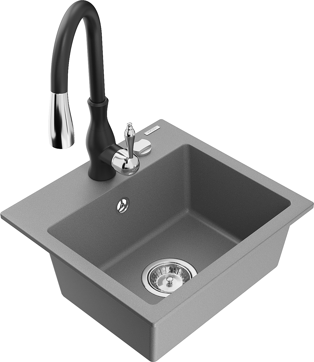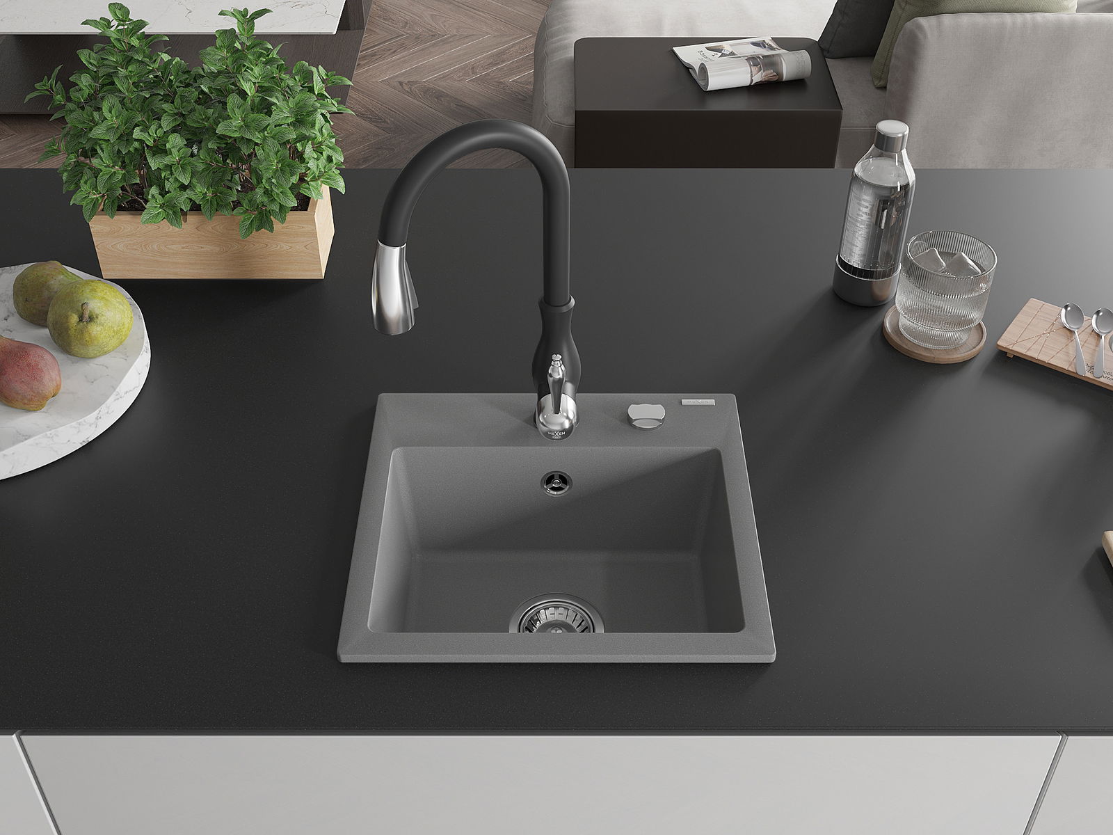 Mexen Milo granitinis kriauklė su viena talpa su virtuviniu maišytuvu Savita, pilka - 6505-71-672601-70