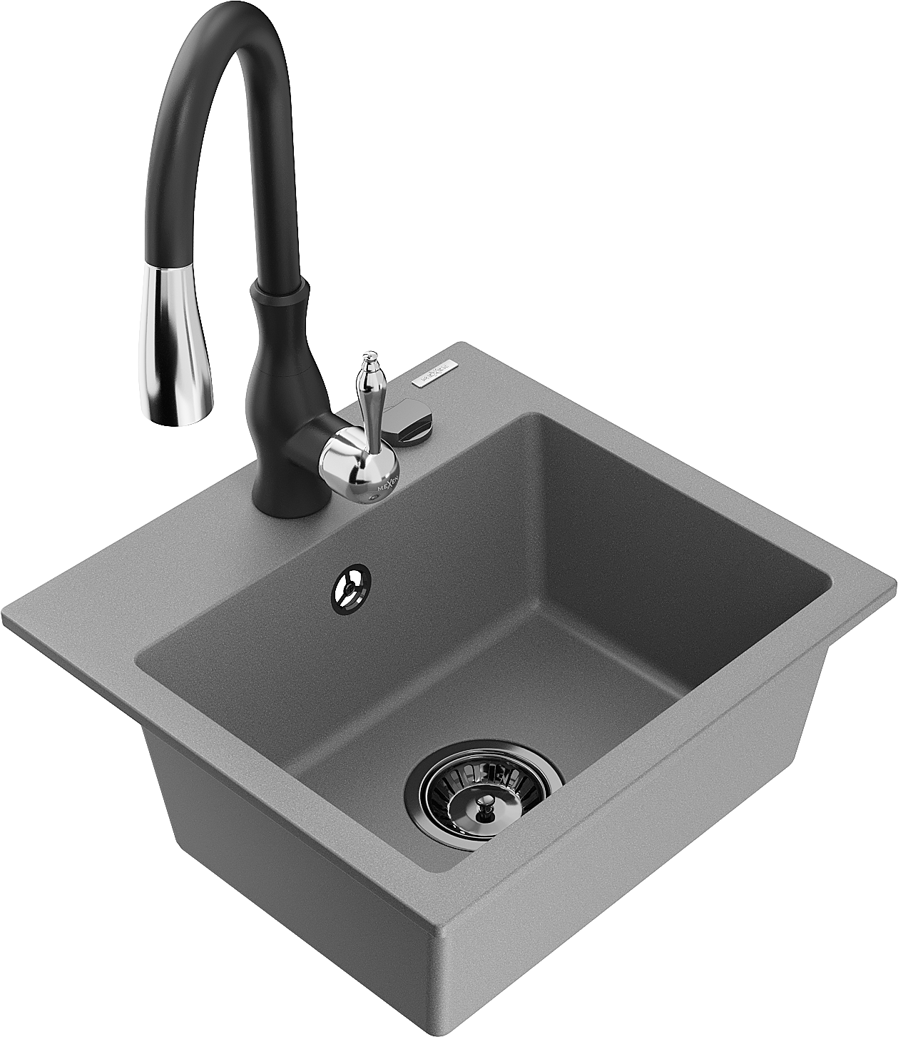Mexen Milo granitinė plautuvė su vienu dubeniu ir virtuviniu maišytuvu Savita, pilka - 6505-71-672601-70-B
