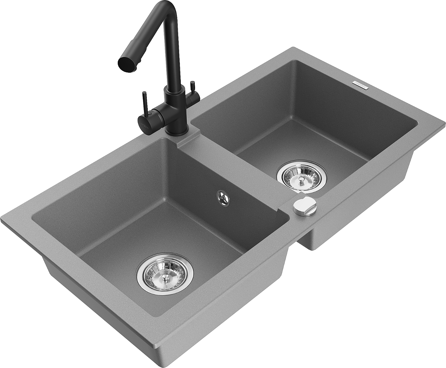 Mexen Mario granito dviejų skyrių virtuvės kriauklė su Duero virtuviniu maišytuvu, pilka - 6504-71-671600-70
