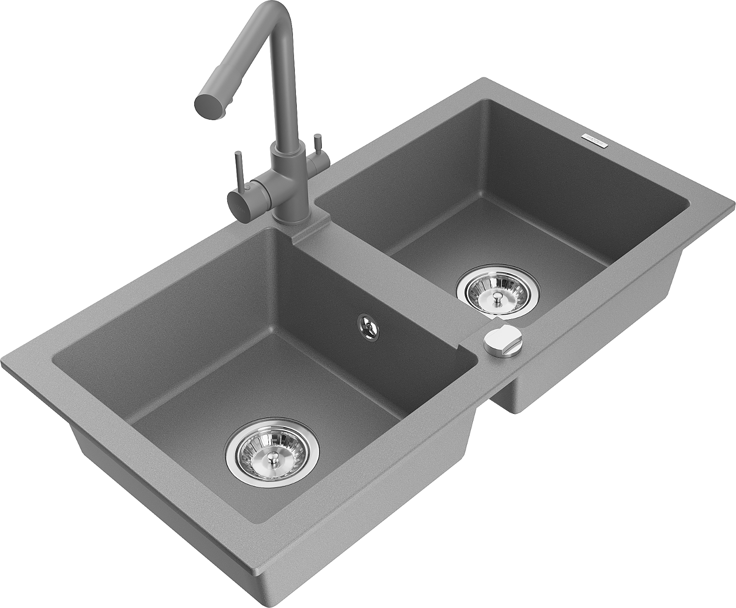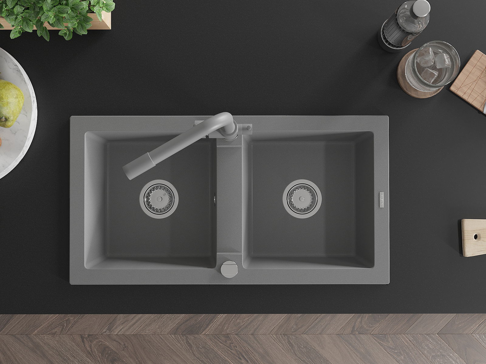 Mexen Mario dviejų skyrių granitinė plautuvė su Duero virtuviniu maišytuvu, pilka - 6504-71-671600-71