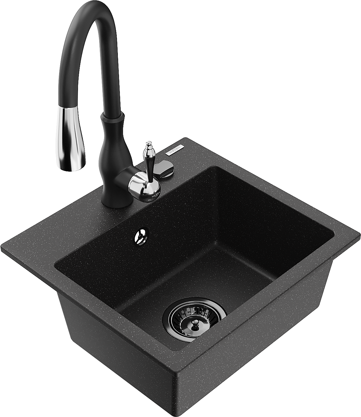 Mexen Milo granito plautuvė 1 skyrelio su virtuviniu maišytuvu Savita, juoda/sidabrinis metalikas- 6505-73-672601-70-B