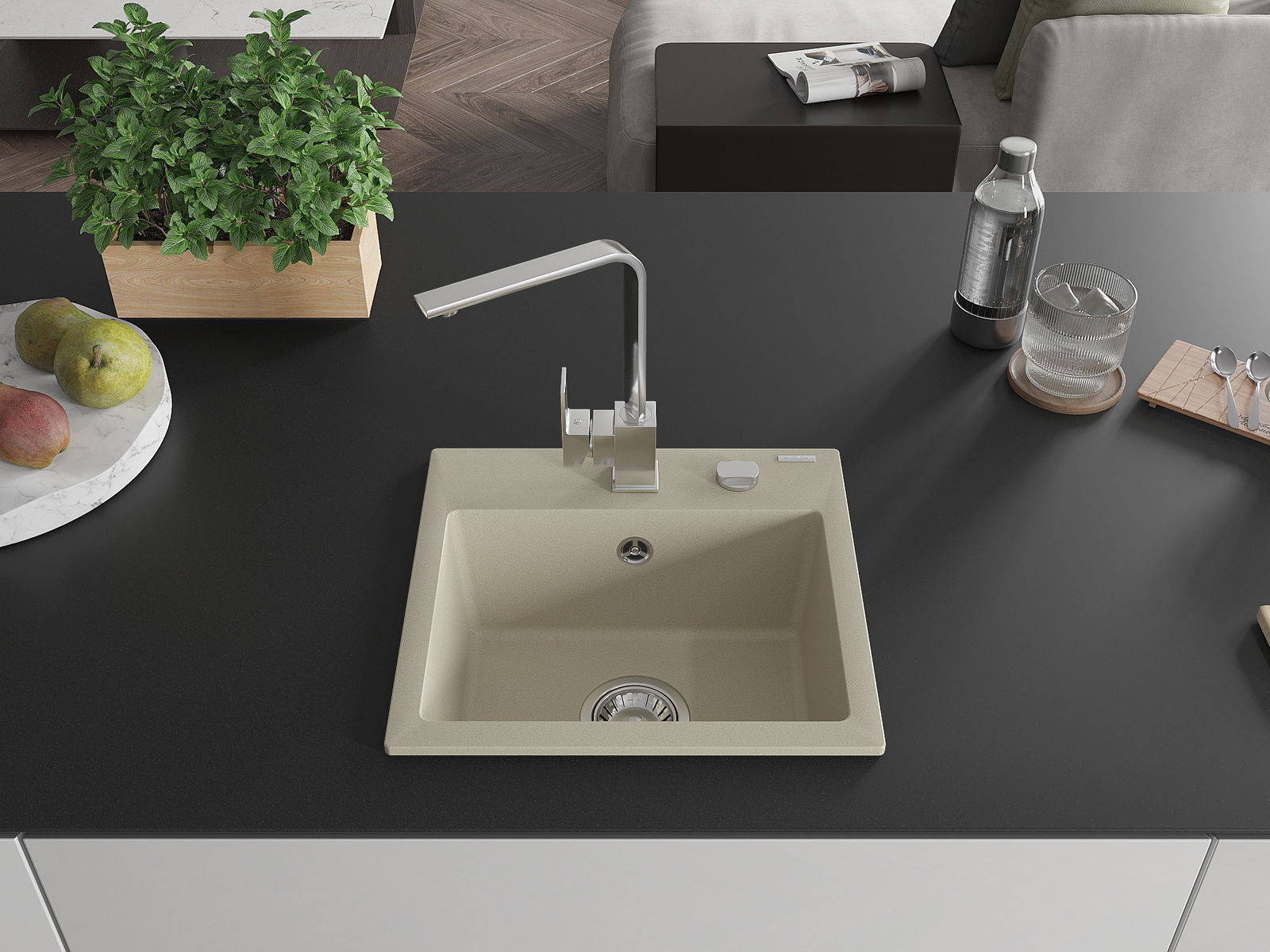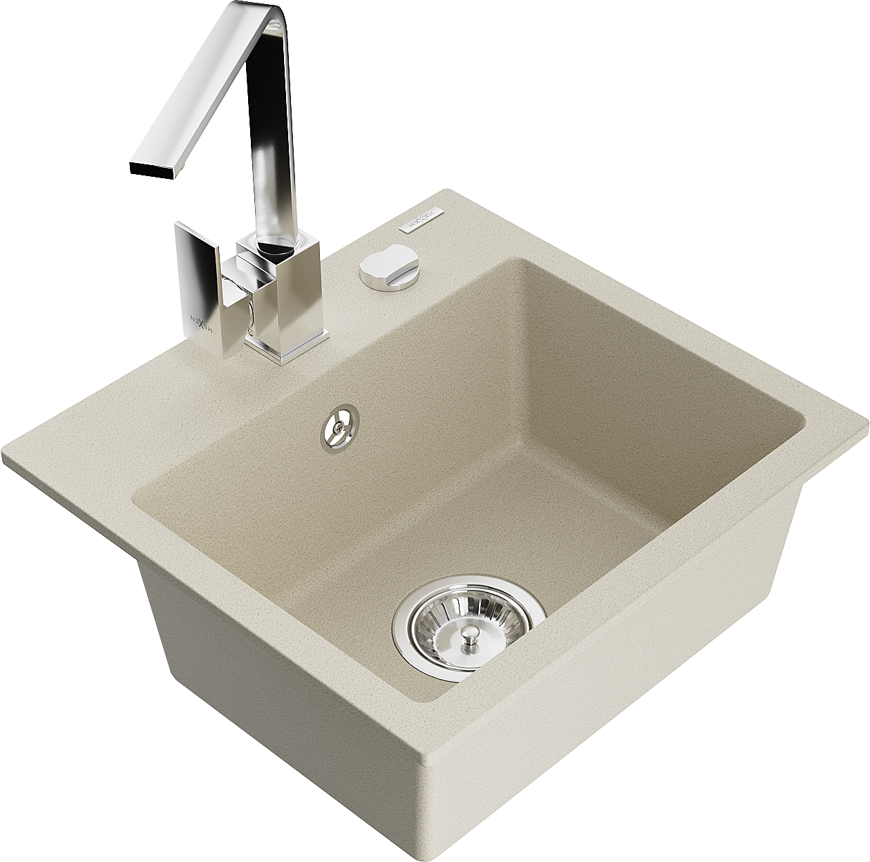 Mexen Milo granitinė vienos kameros plautuvė su virtuviniu maišytuvu Rita, smėlio spalvos - 6505-69-670300-00