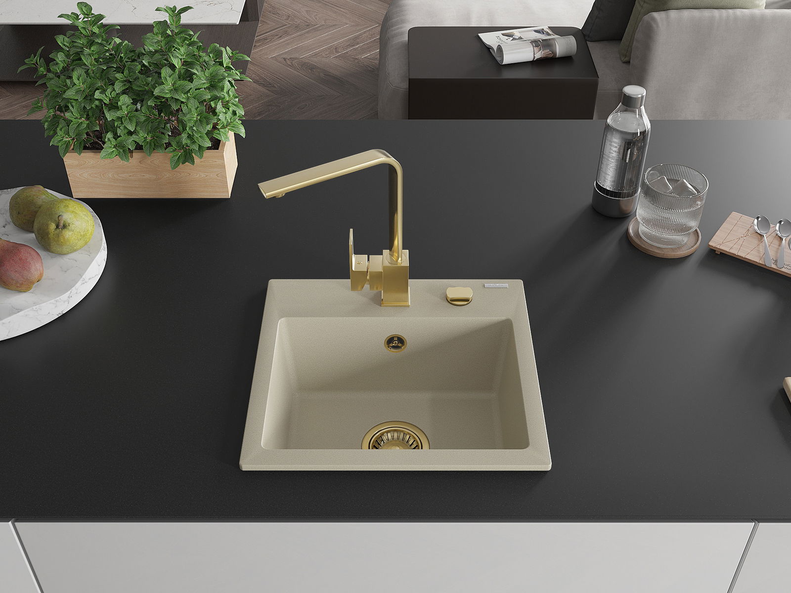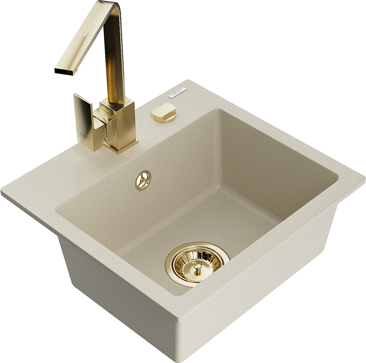 Mexen Milo granitinė plautuvė su vienu dubeniu ir virtuviniu maišytuvu Rita, smėlio spalvos - 6505-69-670300-50