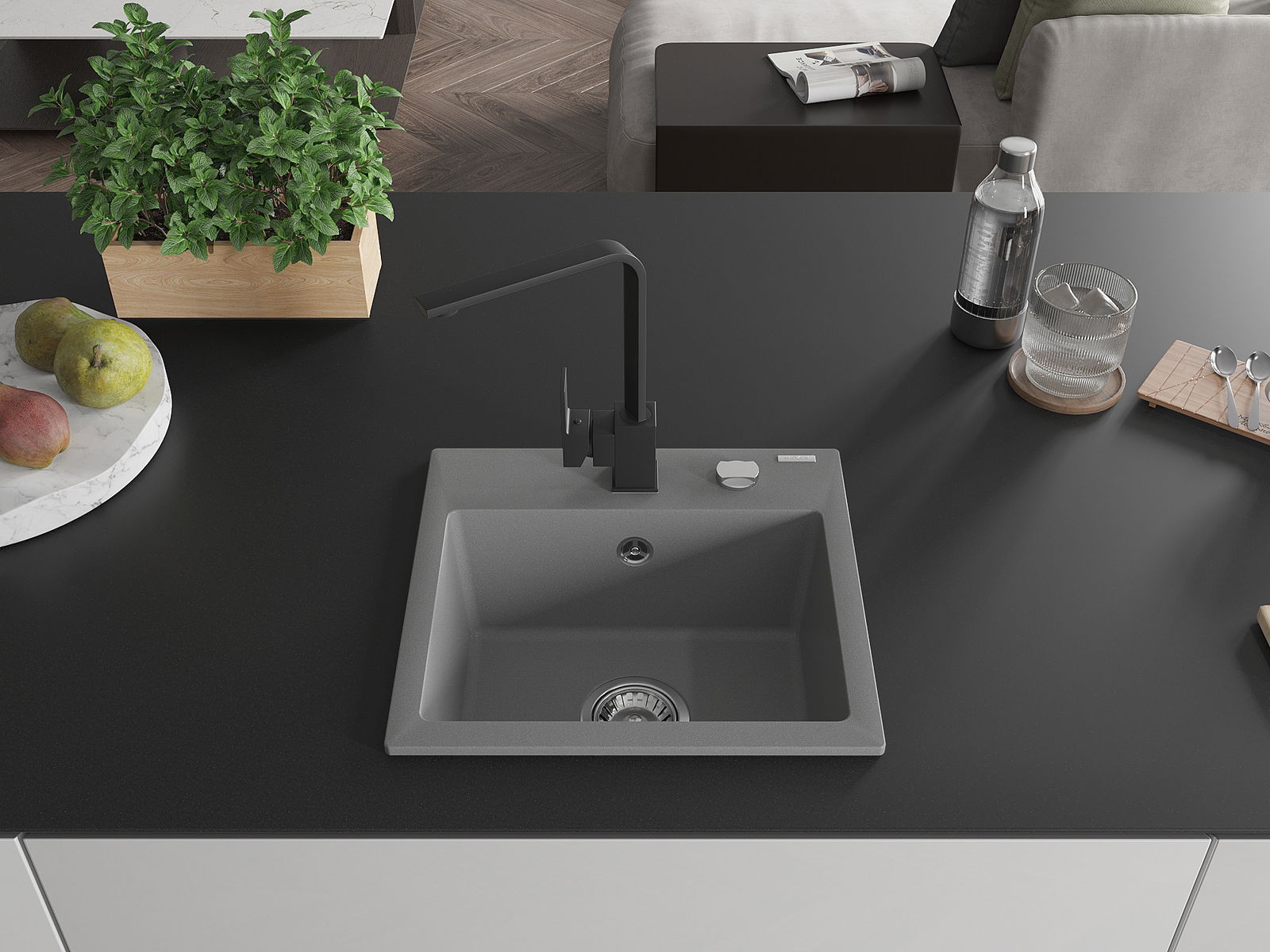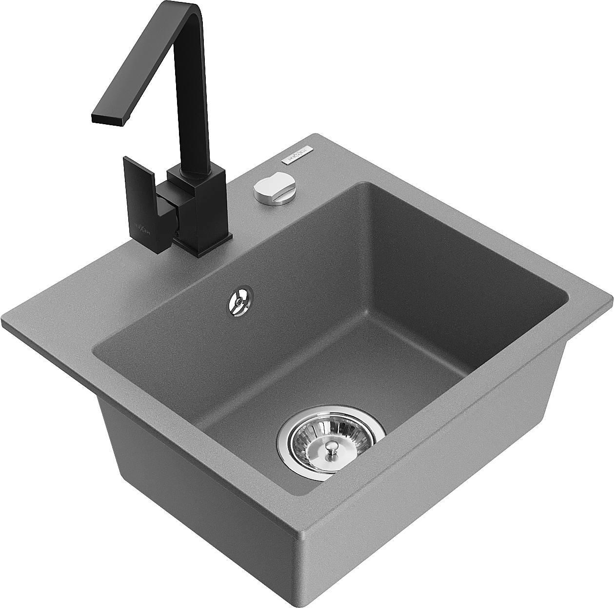 Mexen Milo granito kriauklė su vienu dubeniu ir virtuvės maišytuvu Rita, pilka - 6505-71-670300-70