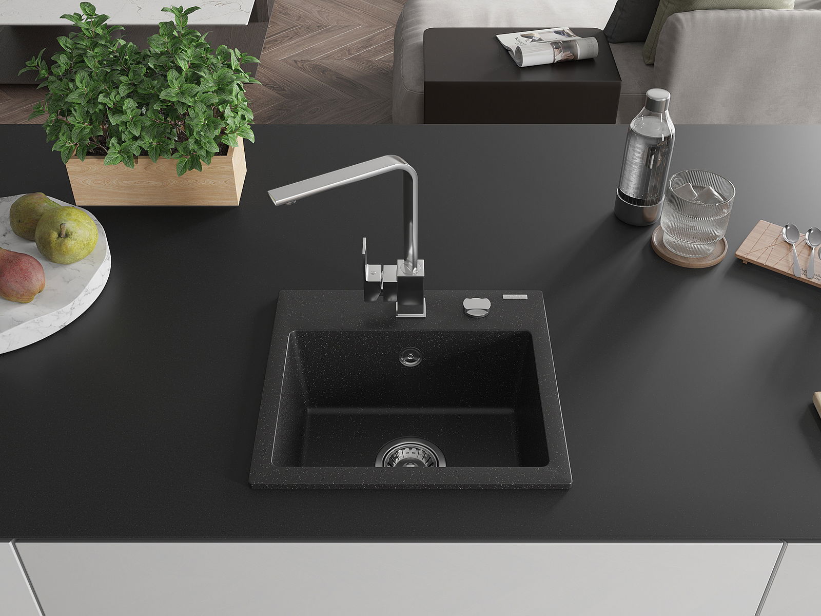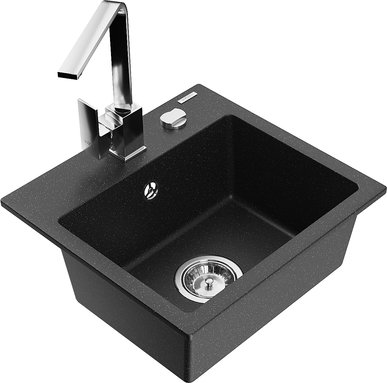 Mexen Milo vienos kameros granitinė kriauklė su virtuviniu maišytuvu Rita, juodas/sidabrinis metališkas - 6505-73-670300-00