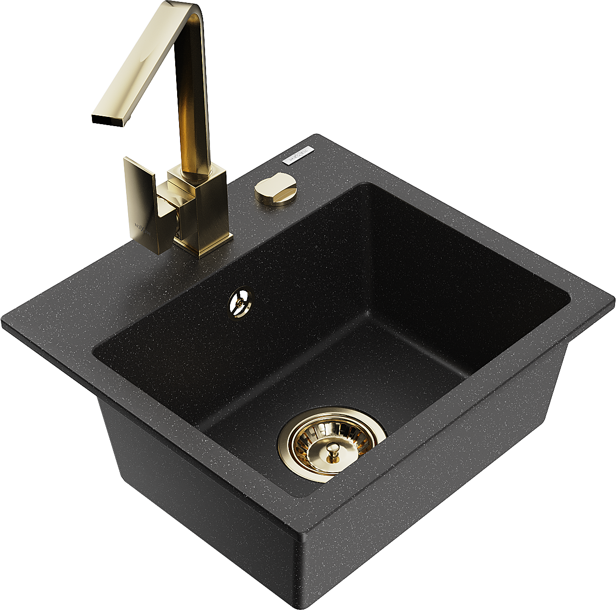 Mexen Milo granitinė virtuvės kriauklė su maišytuvu Rita, juoda/sidabro metalikas - 6505-73-670300-50