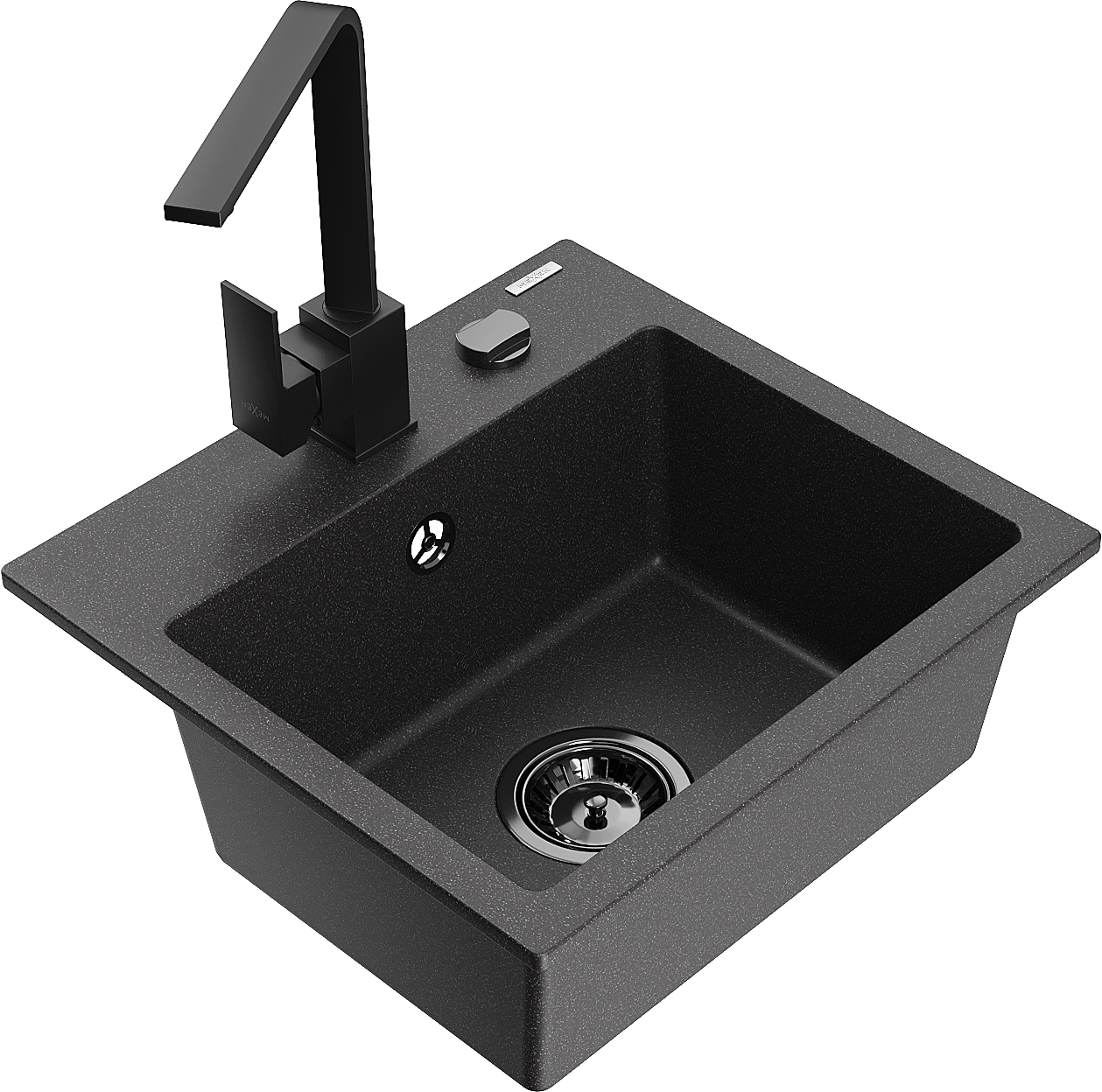 Mexen Milo granitinė vienos plautuvės kriauklė su virtuviniu maišytuvu Rita, juoda dėmėta - 6505-76-670300-70-B