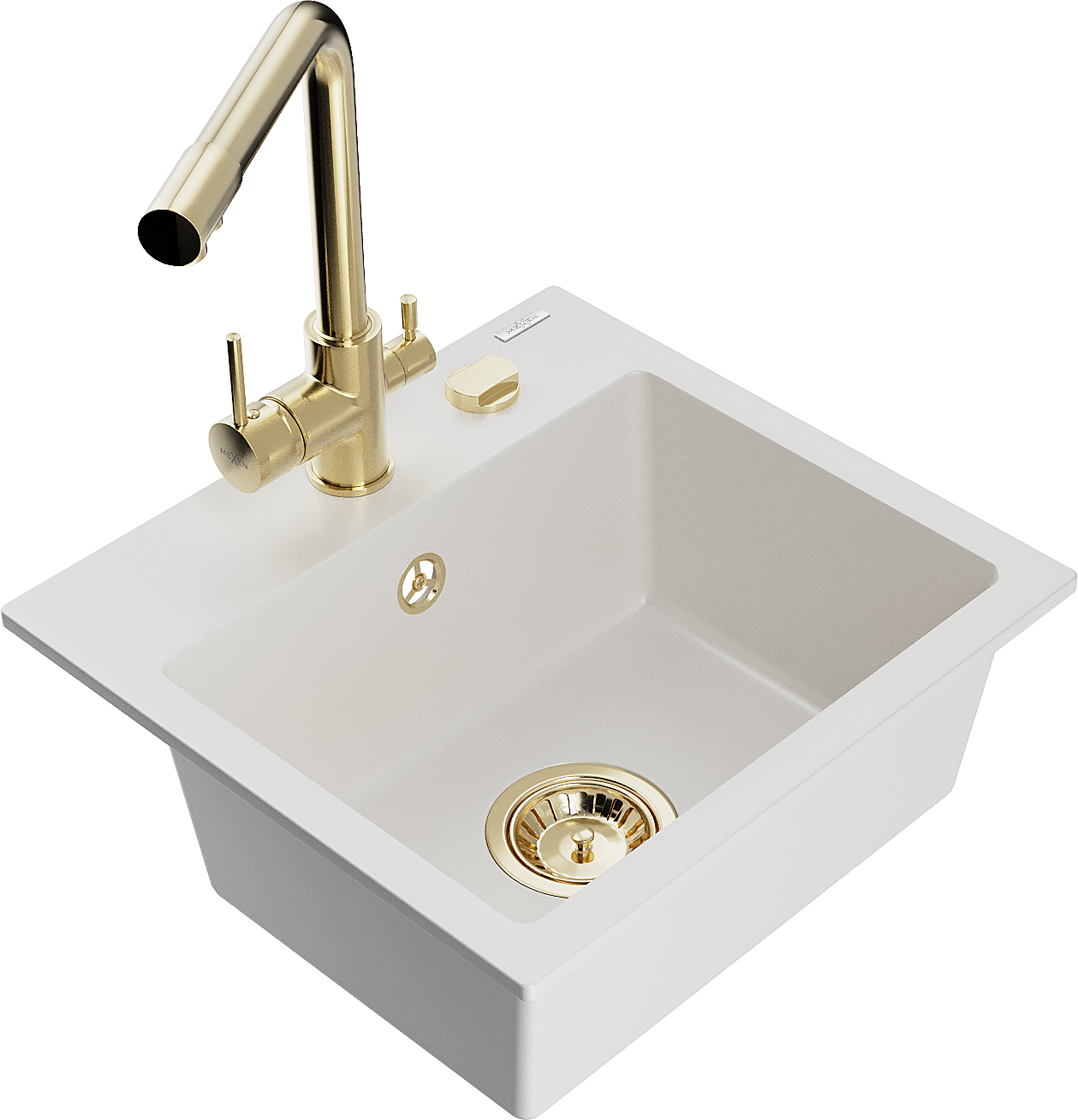 Mexen Milo granitinis vienos sekcijos praustuvas su virtuviniu maišytuvu Duero, baltas - 6505-20-671600-50