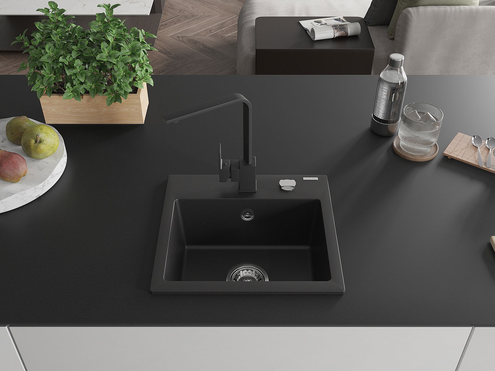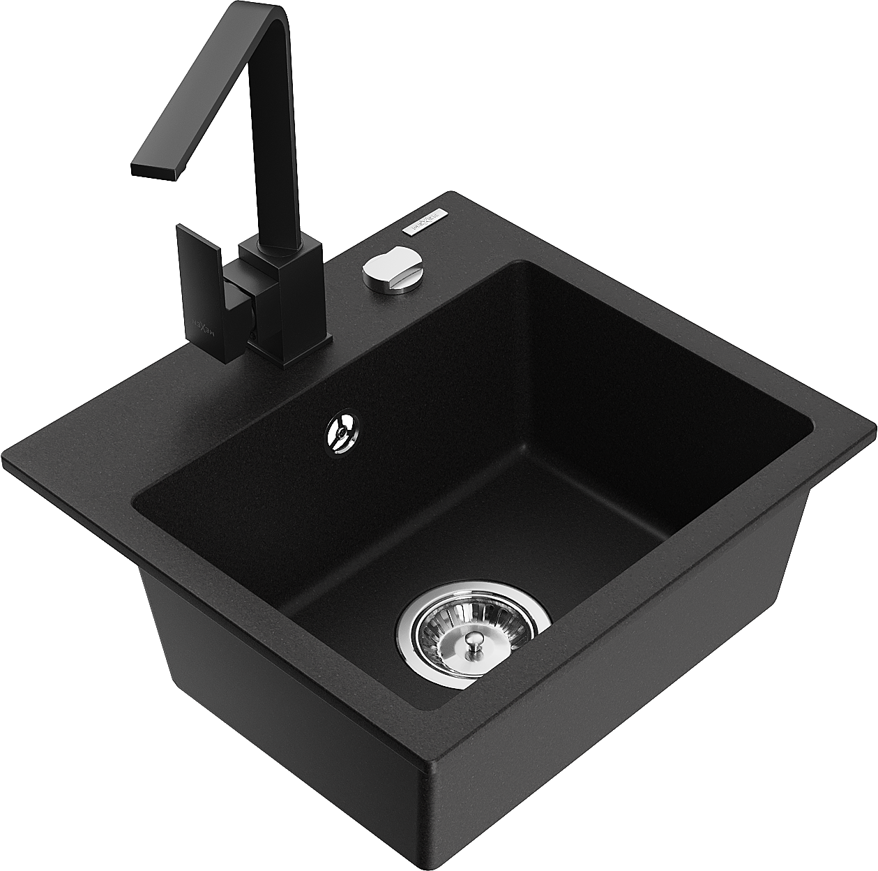 Mexen Milo granito kriauklė 1-skyrelio su virtuviniu maišytuvu Rita, juoda - 6505-77-670300-70
