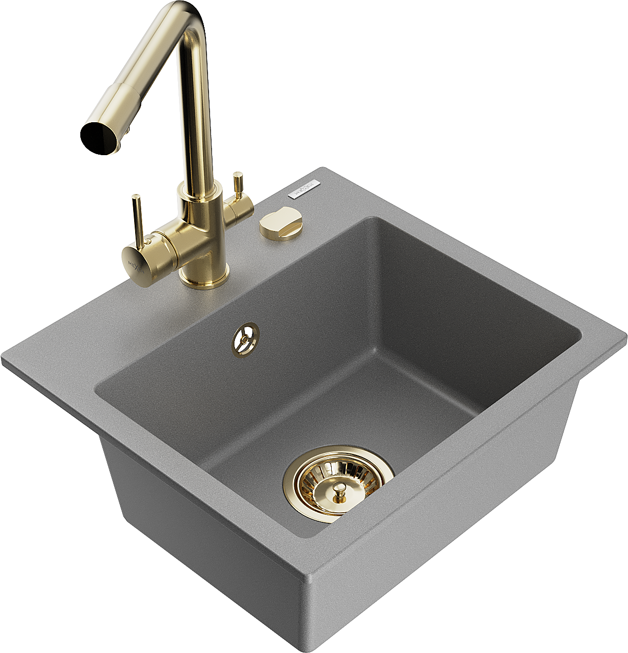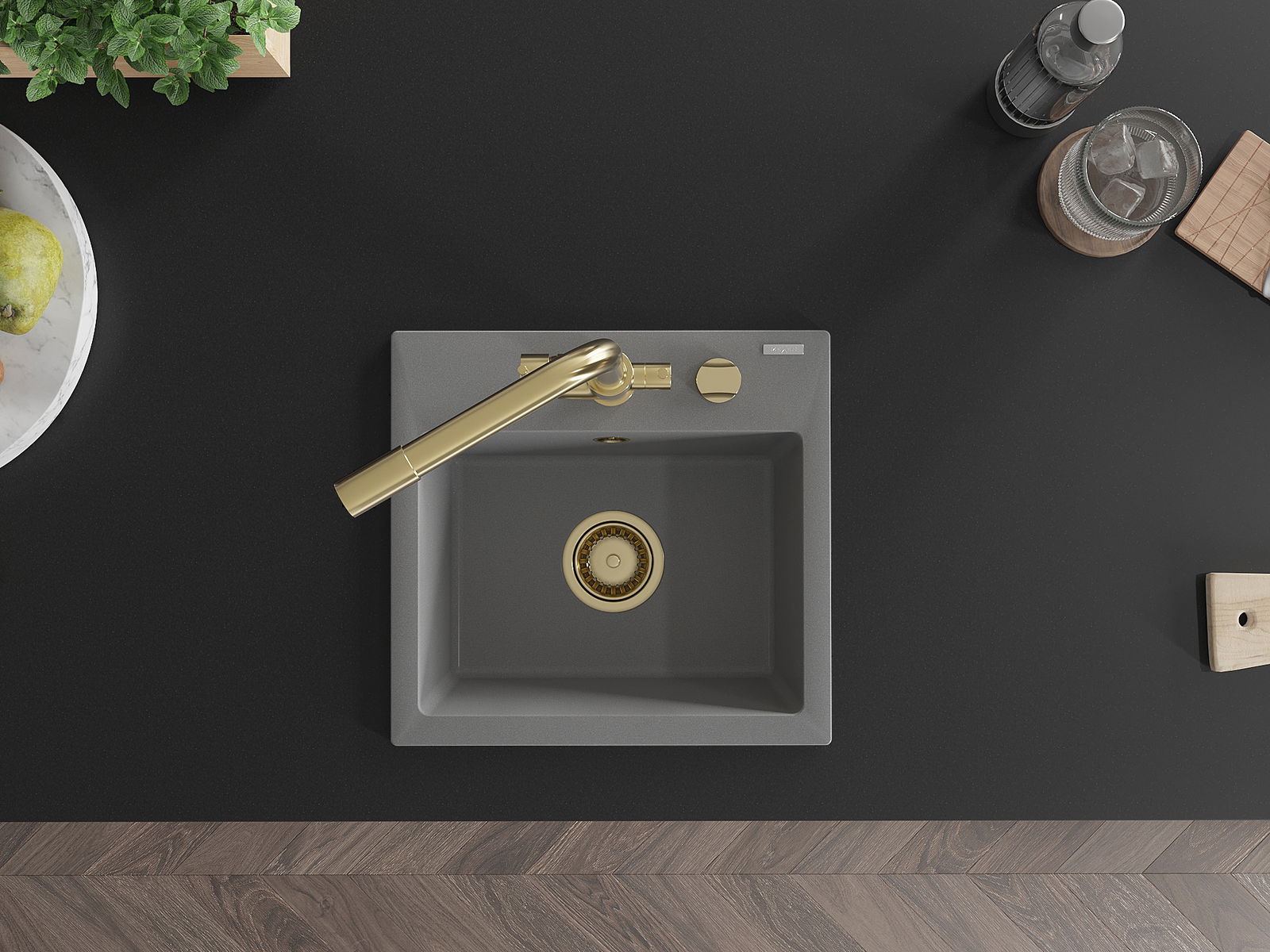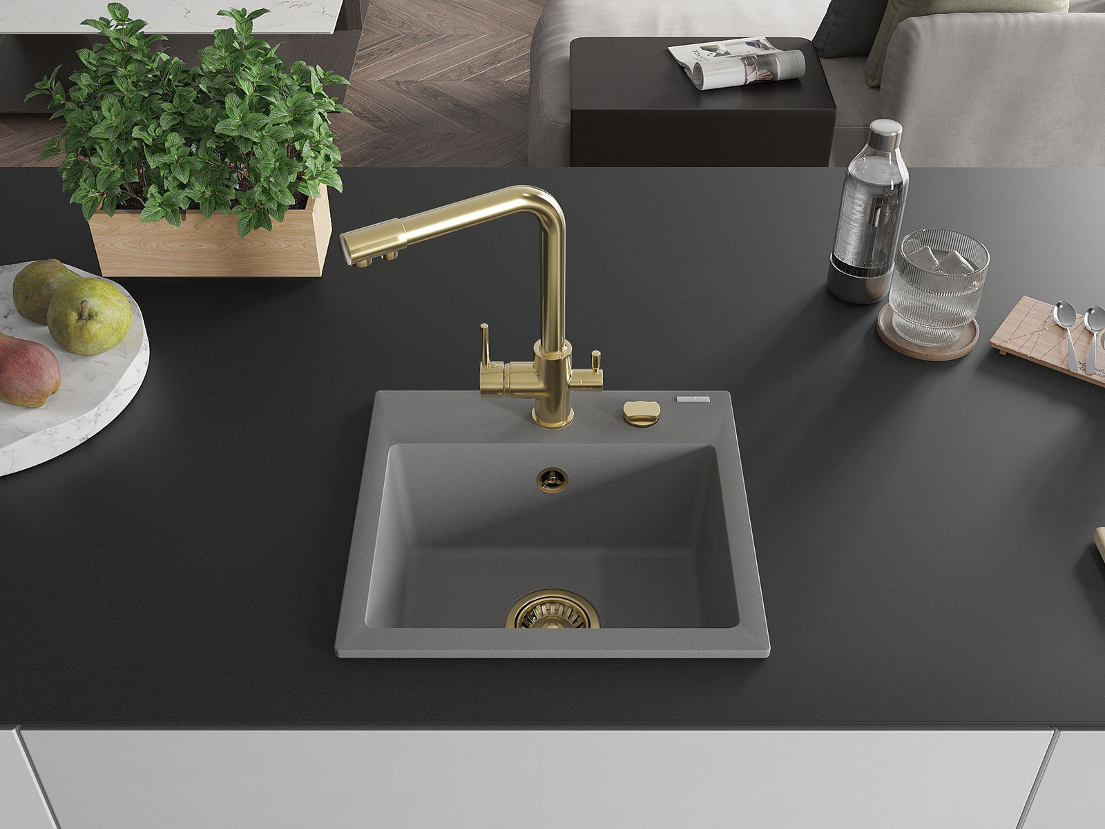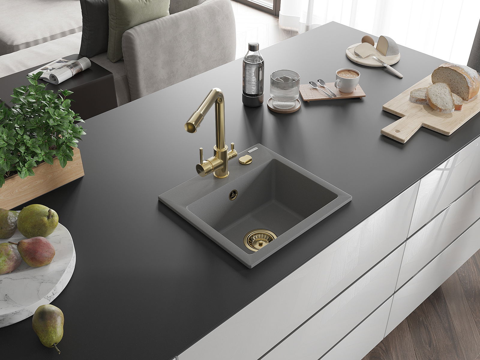 Mexen Milo granito plautuvė su vienu dubeniu ir Duero virtuviniu maišytuvu, pilkas - 6505-71-671600-50