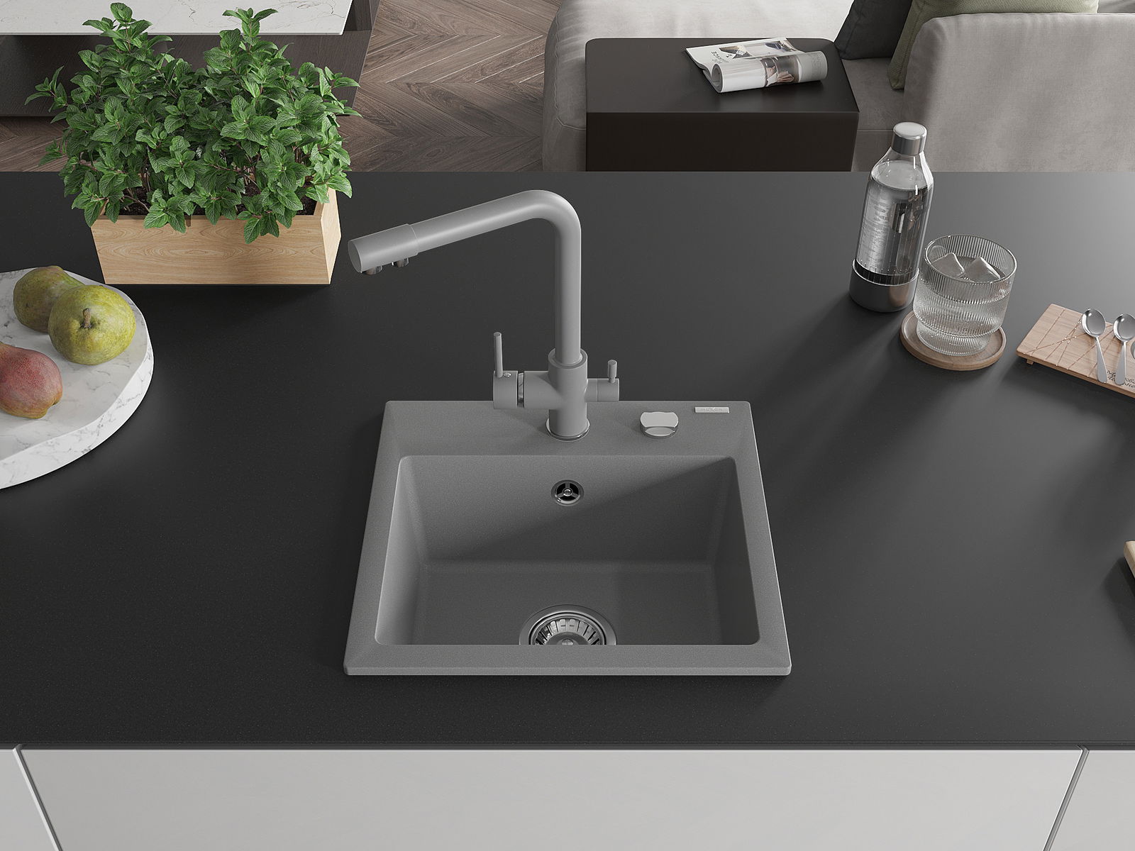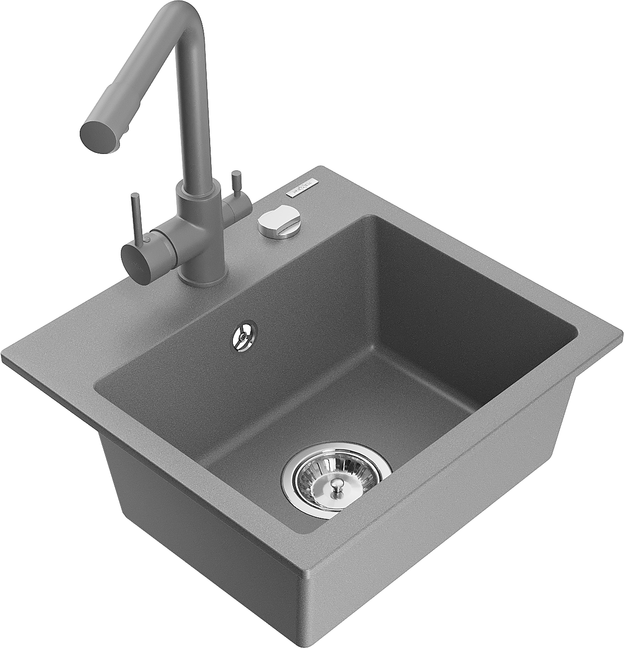 Mexen Milo vienos kameros granito plautuvė su Duero virtuviniu maišytuvu, pilka - 6505-71-671600-71
