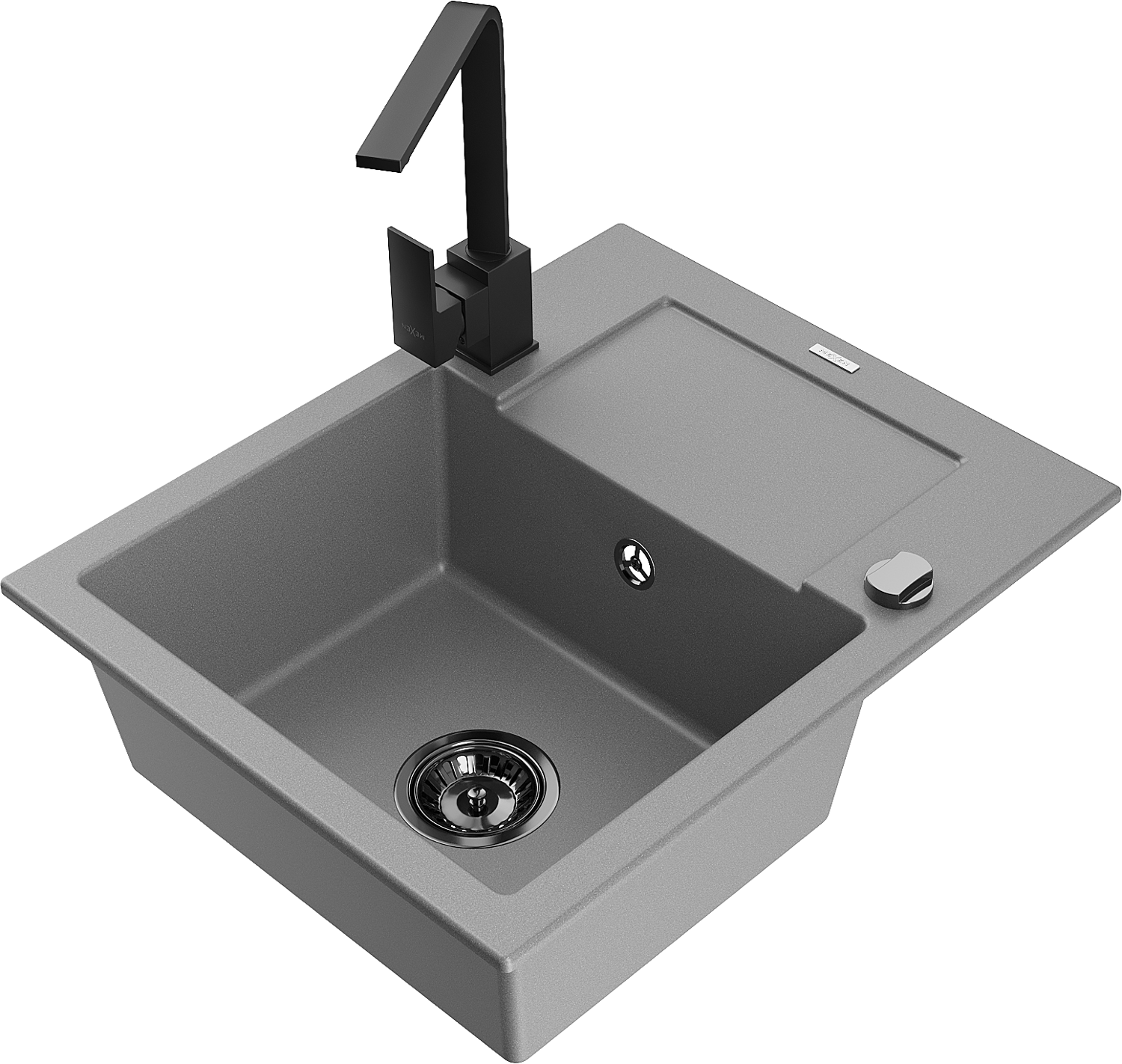 Mexen Enzo įleidžiamas į stalviršį granito plautuvė su vienu dubeniu ir vandens maišytuvu Rita, pilkas - 6506-71-670300-70-B