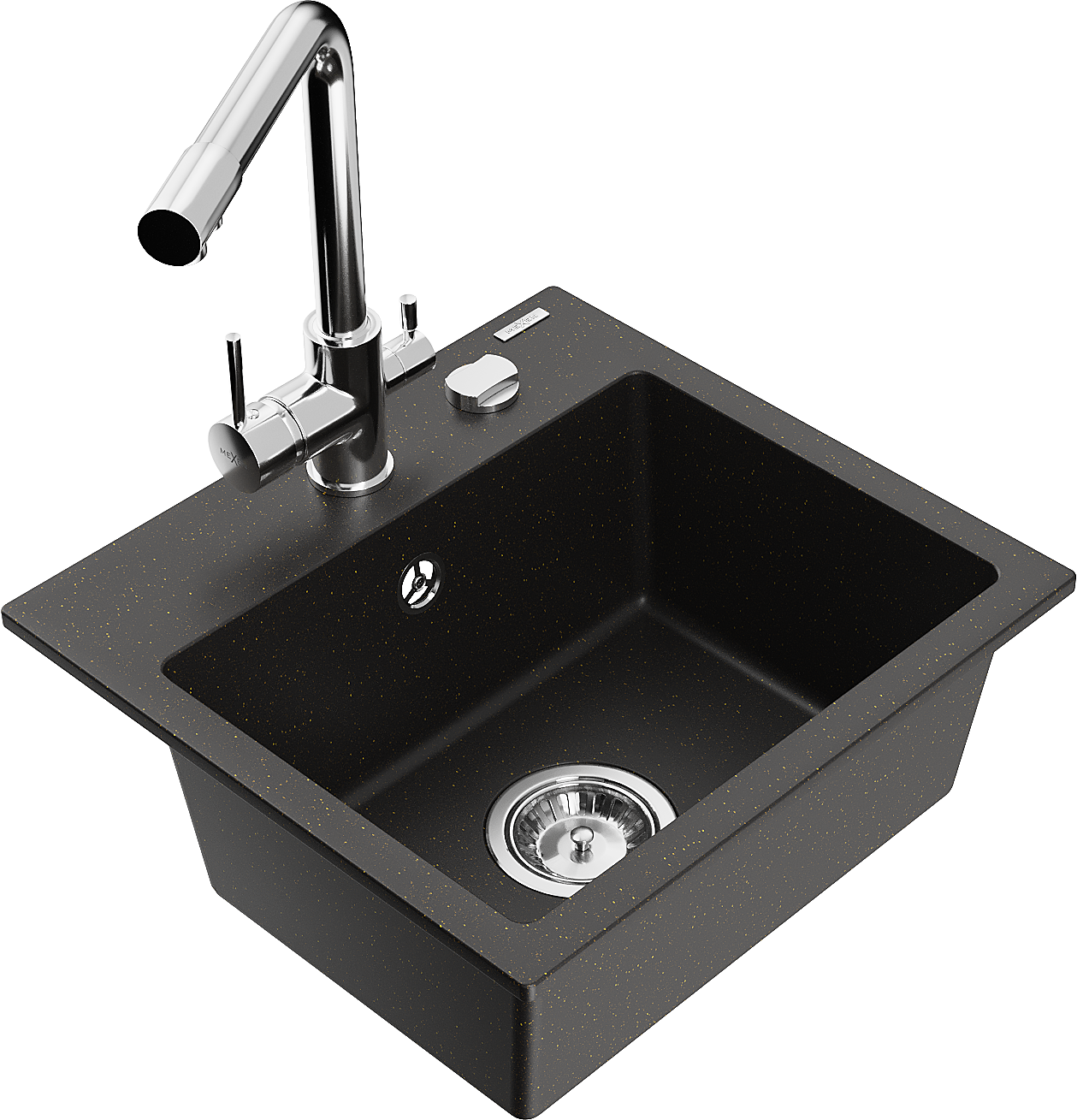 Mexen Milo granito plautuvė su 1 kamera ir virtuviniu maišytuvu Duero, juoda/auksinė metalo - 6505-75-671600-00