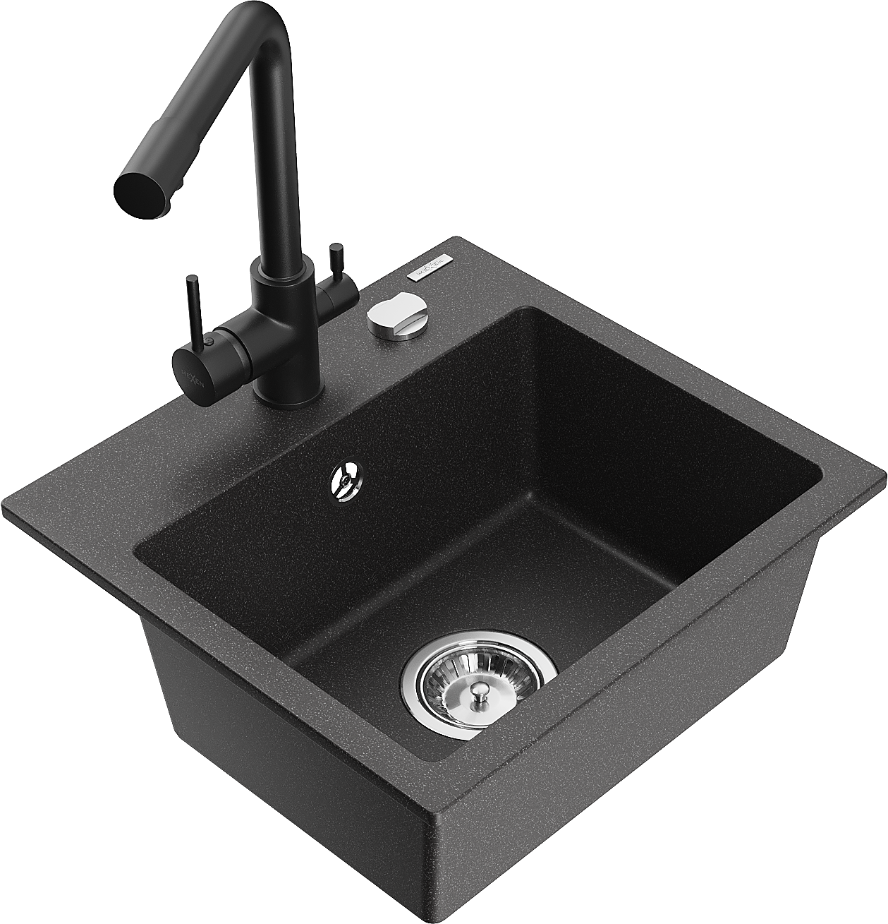 Mexen Milo granito plautuvė 1 skyrius su virtuviniu maišytuvu Duero, juodas su taškeliais - 6505-76-671600-70