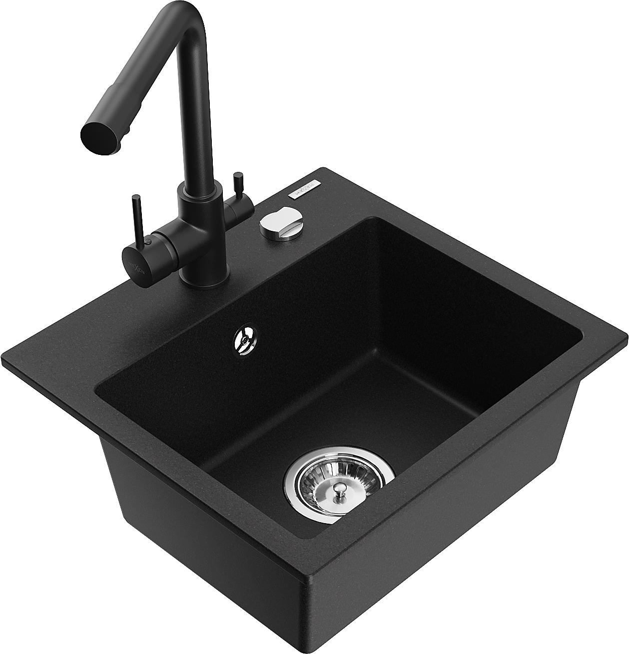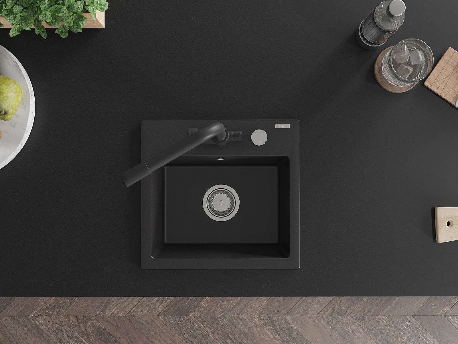 Mexen Milo granito plautuvė vienos kameros su virtuviniu maišytuvu Duero, juoda - 6505-77-671600-70