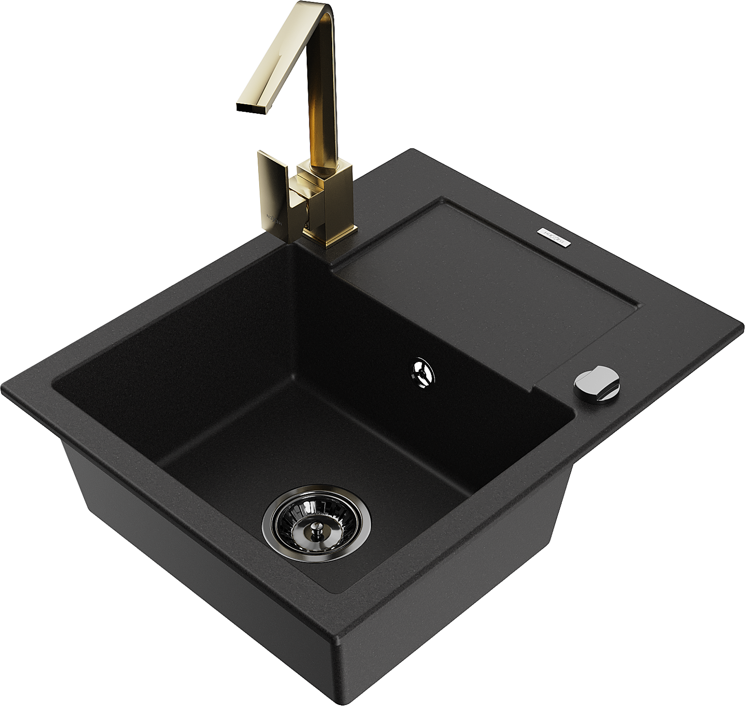 Mexen Enzo granitinė vienos sekcijos plautuvė su nusausintuvu ir virtuviniu maišytuvu Rita, juoda - 6506-77-670300-50-B