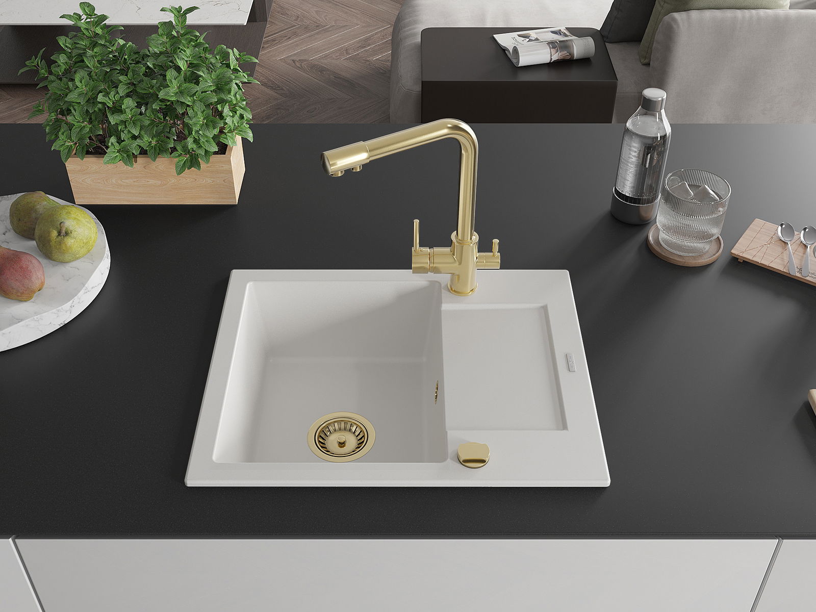 Kriauklės paviršius yra atsparūs dėmėms ir spalvos pasikeitimui, dėl kurio lengva valyti ir ilgą laiką išlaikyti savo spalvą. Estetinis ir praktiškai papildantis kiekvieną virtuvę.