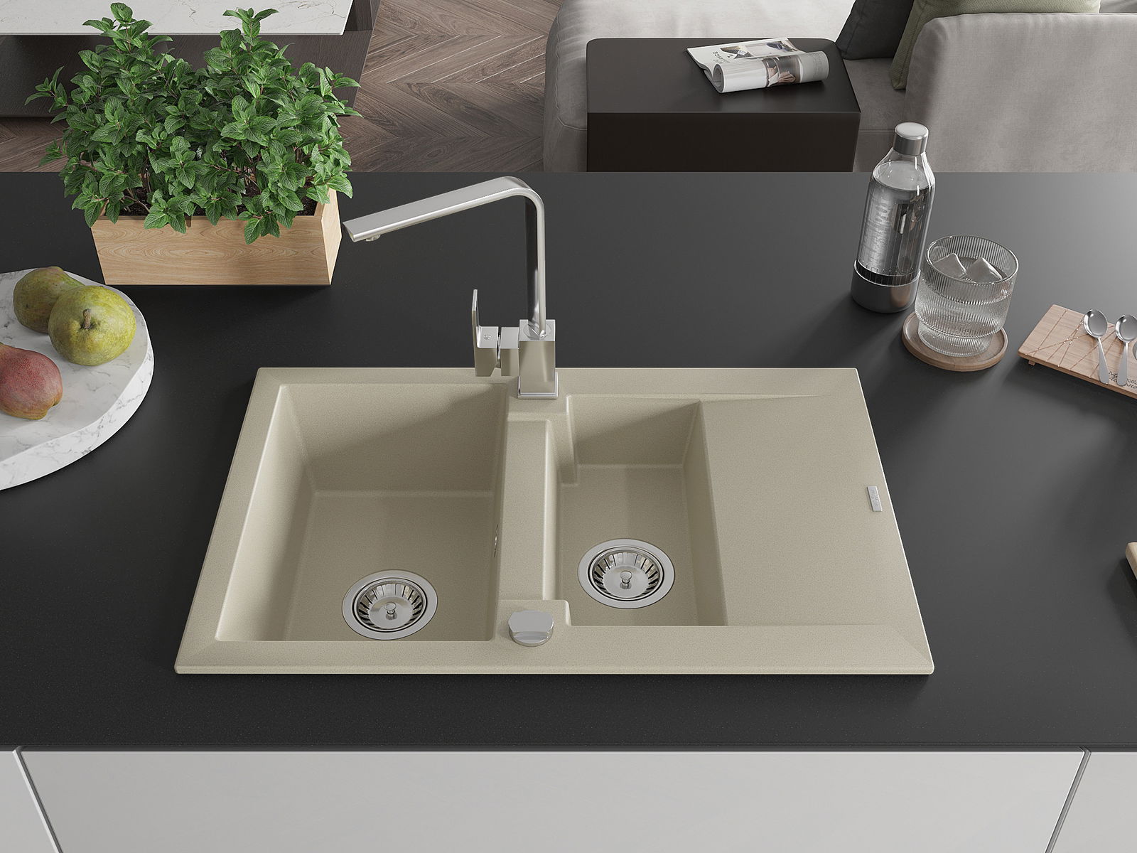 Kriauklės paviršius yra atsparus dėmėms ir spalvos pokyčiams, todėl jį lengva prižiūrėti ir jis išlaiko savo spalvą ilgą laiką. Estetiškai ir praktiškai papildo kiekvieną virtuvę.