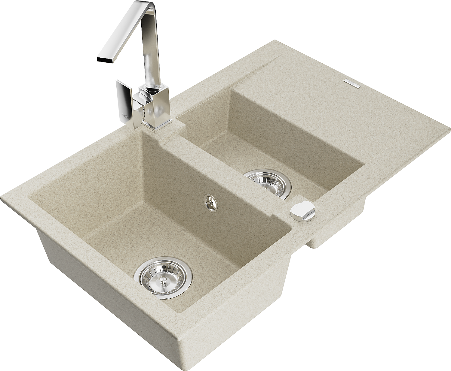 Mexen Gaspar 1,5 kamerų granitinė plautuvė su nutekėjimu ir virtuviniu maišytuvu Rita, smėlio spalvos - 6507-69-670300-00