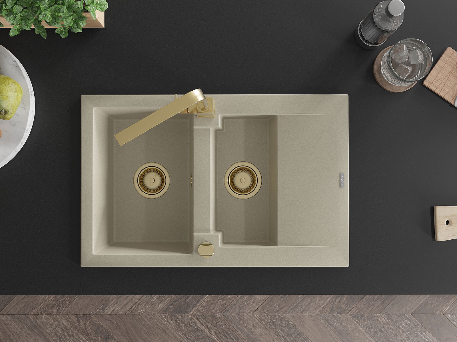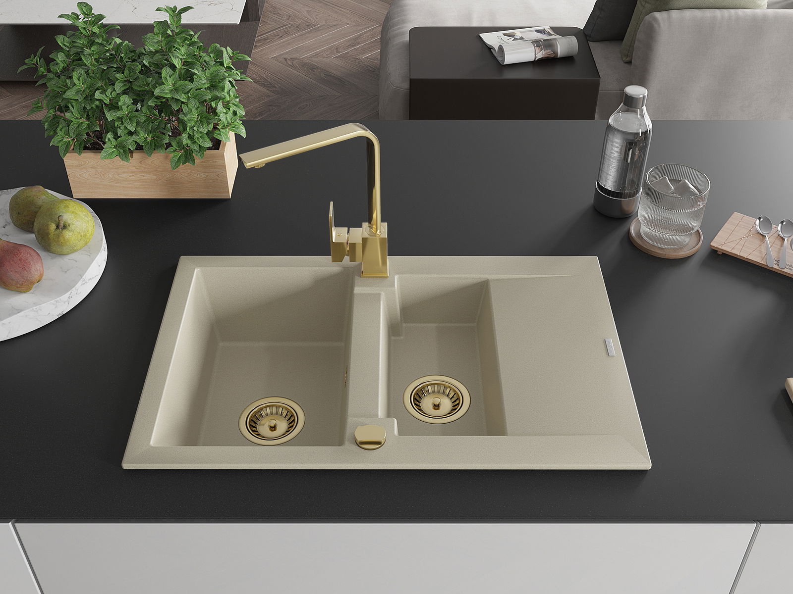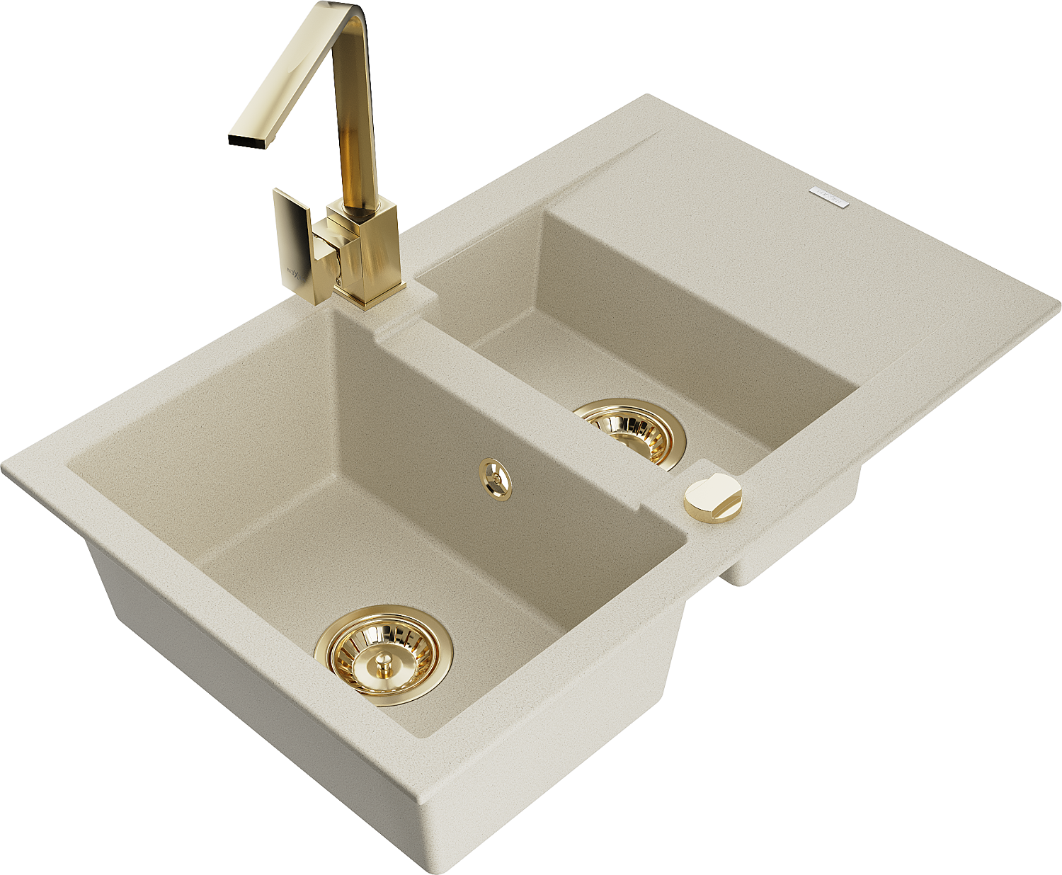 Mexen Gaspar granito plautuvė 1,5 kamerų su nutiekėjimu ir virtuvės maišytuvu Rita, smėlinė - 6507-69-670300-50