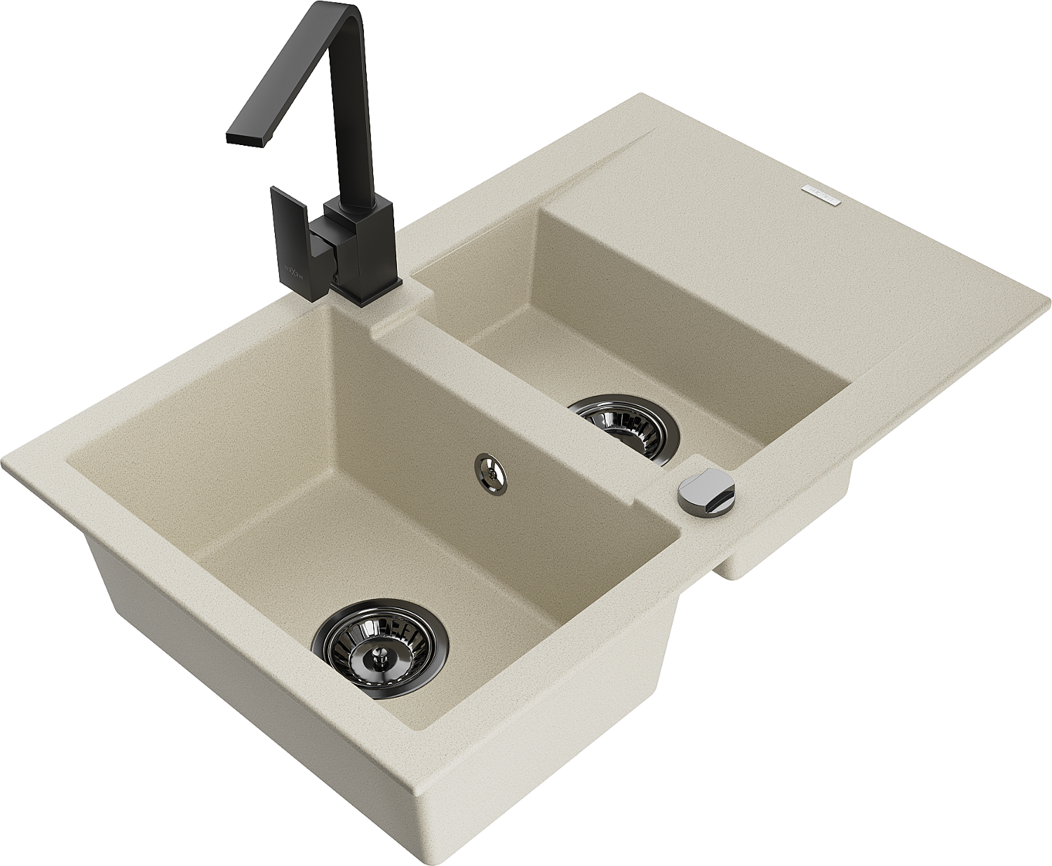 Mexen Gaspar granitinė virtuvės plautuvė su 1,5 stalčių ir kranu Rita, smėlio spalvos - 6507-69-670300-70