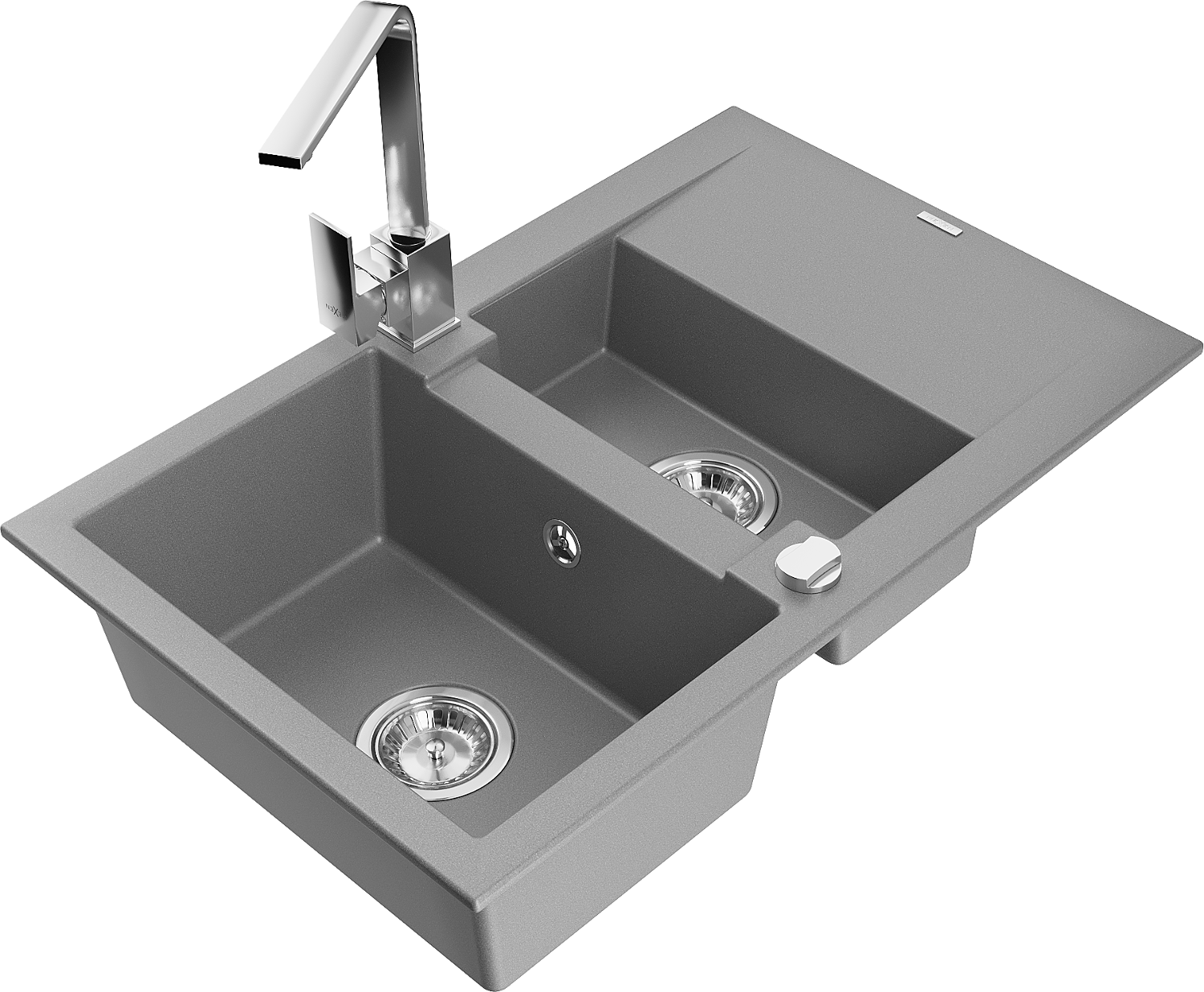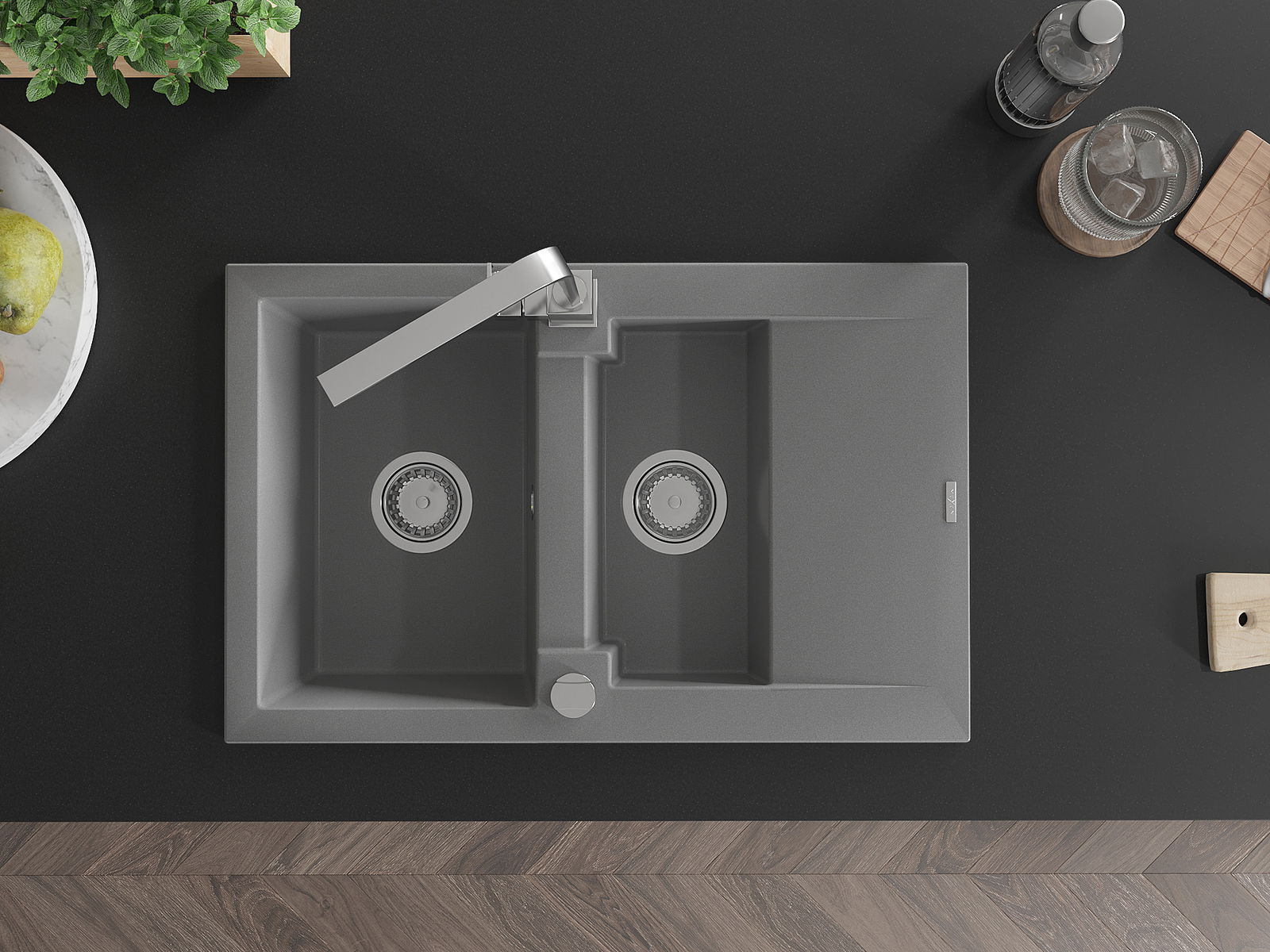 Mexen Gaspar granito plautuvė 1,5 kamerų su drenažu ir virtuviniu maišytuvu Rita, pilka - 6507-71-670300-00