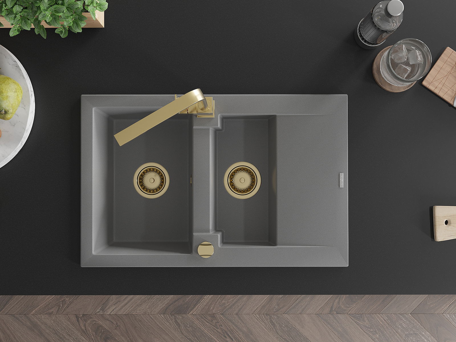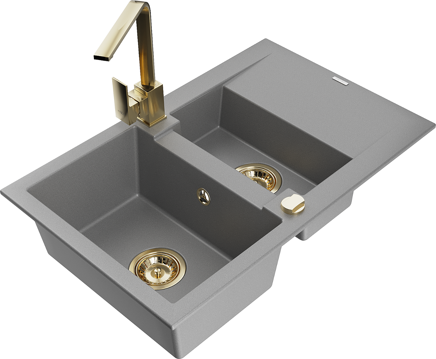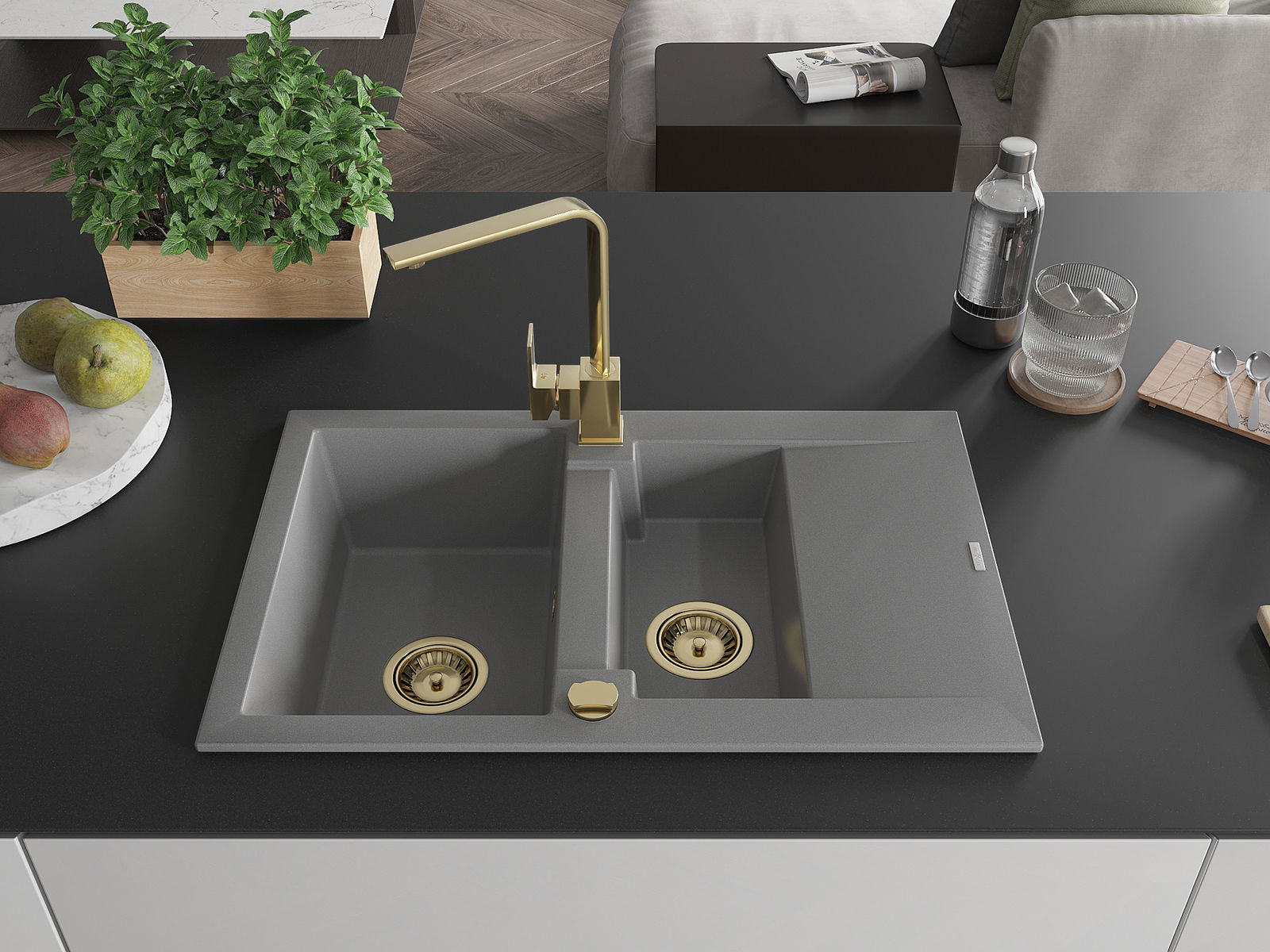 Mexen Gaspar granitinis 1,5 kamerų virtuvės kriauklė su nusausintuvu ir virtuvės maišytuvu Rita, pilka - 6507-71-670300-50