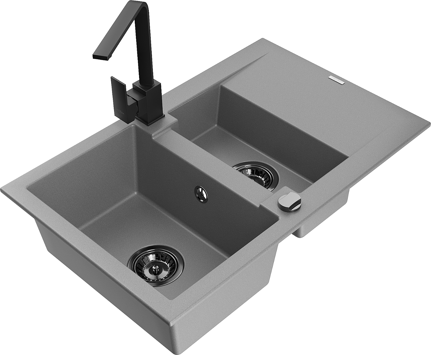 Mexen Gaspar granitinis praustuvas 1,5 skyrių su indų laikikliu ir virtuviniu maišytuvu Rita, pilka - 6507-71-670300-70-B