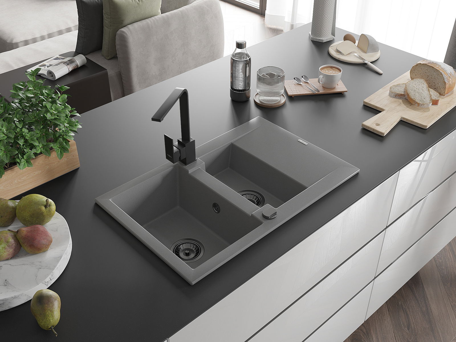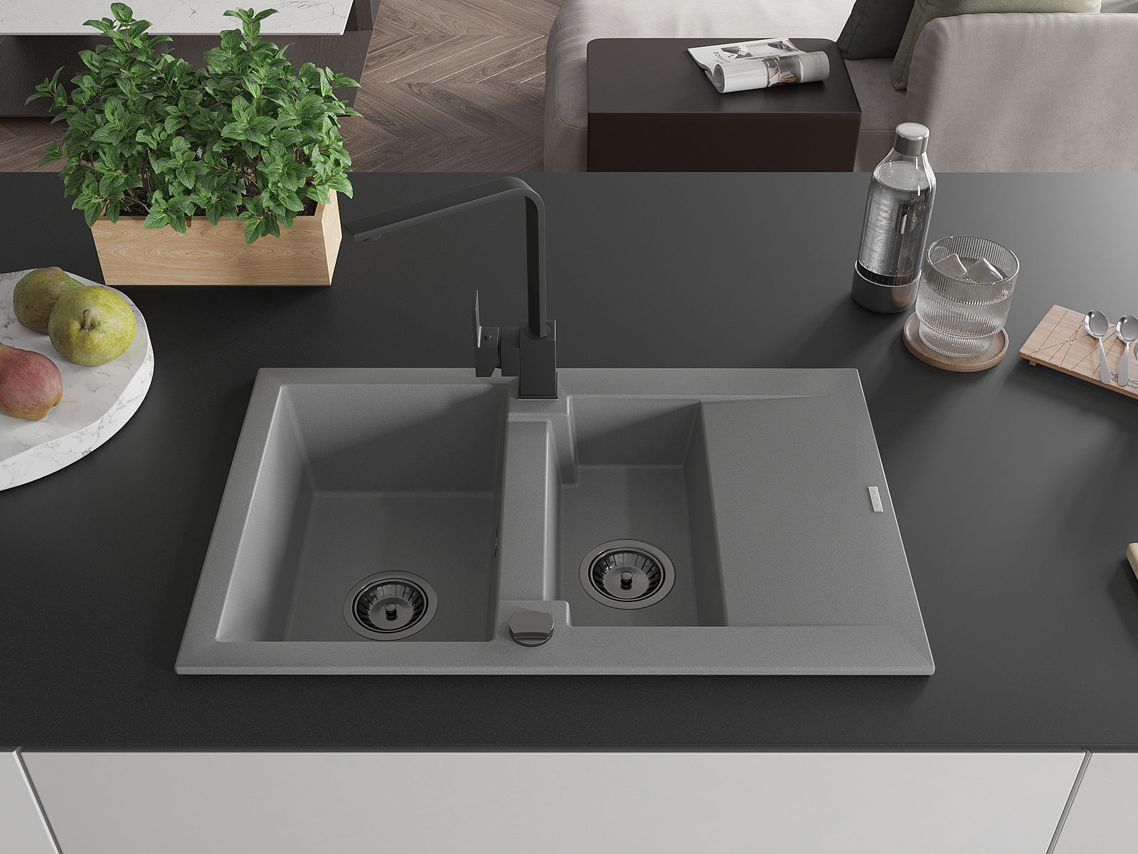 Kriauklės paviršius yra atsparūs dėmėms ir spalvos pasikeitimui, dėl kurio lengva valyti ir ilgą laiką išlaikyti savo spalvą. Estetinis ir praktiškai papildantis kiekvieną virtuvę.