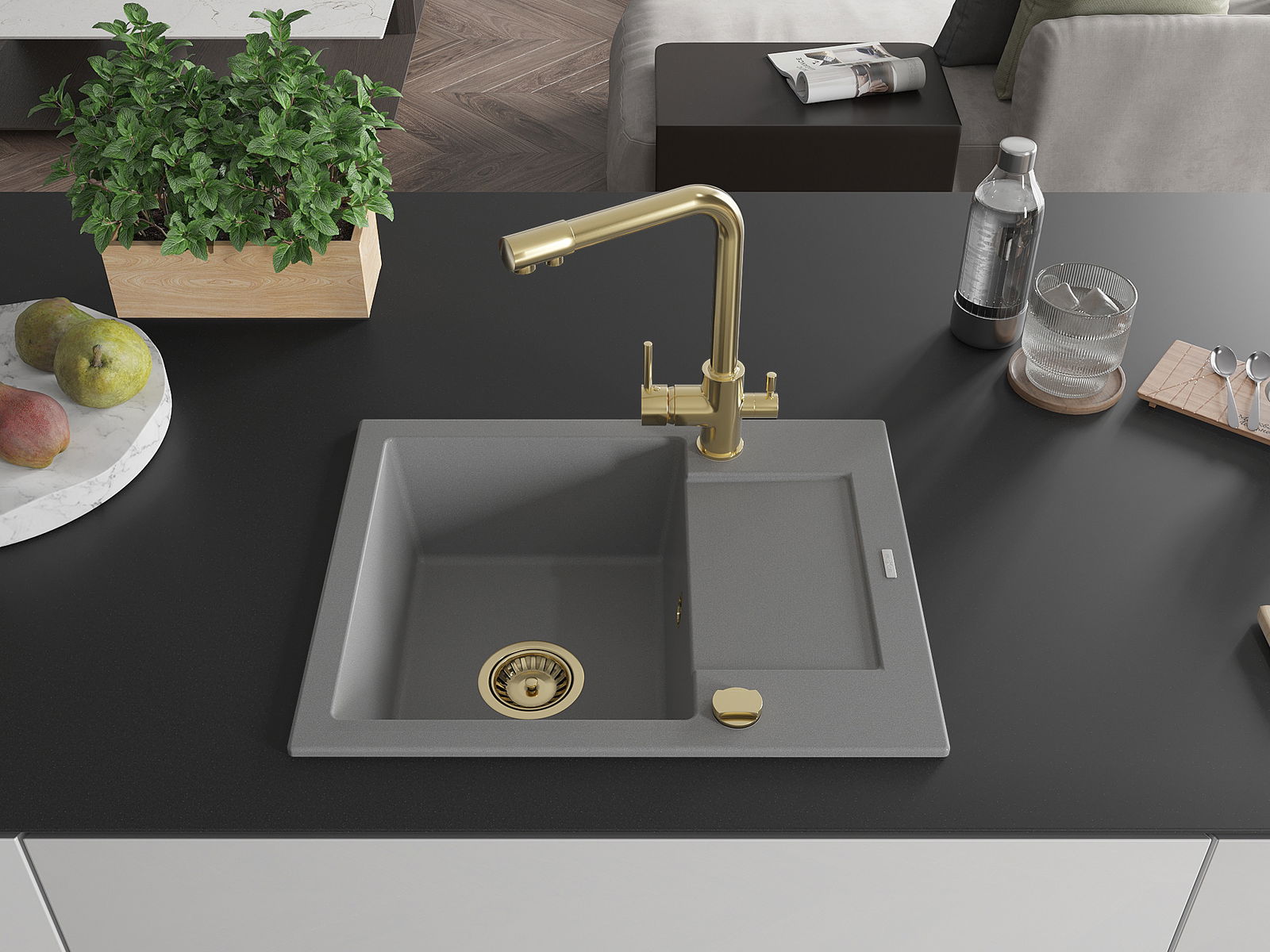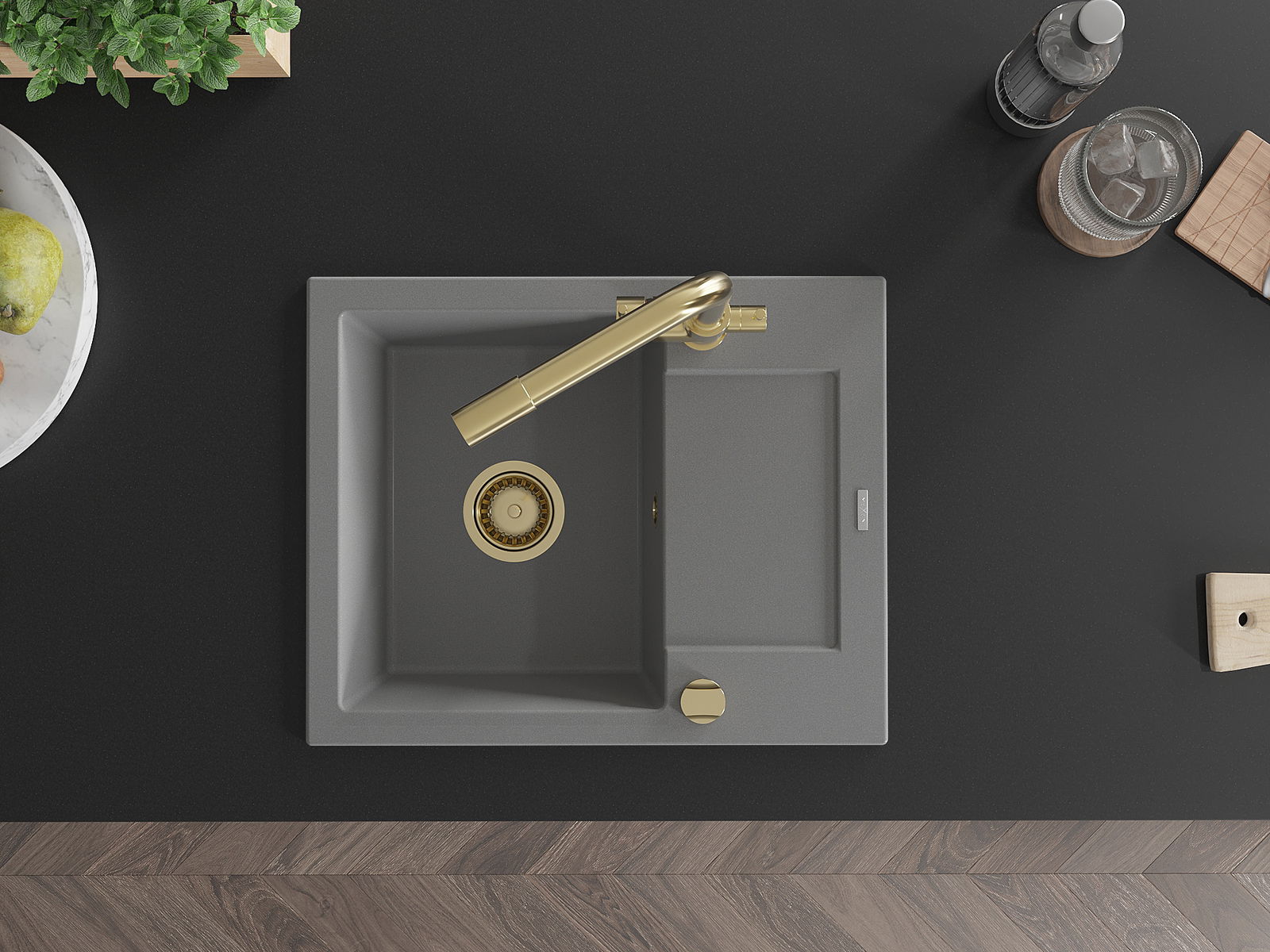 Mexen Enzo granito virtuvinis kriauklė 1 skyrius su nusausinimu ir virtuviniu maišytuvu Duero, pilkas - 6506-71-671600-50