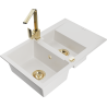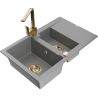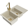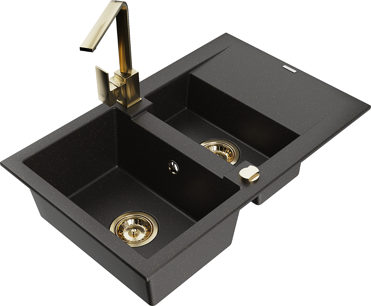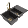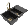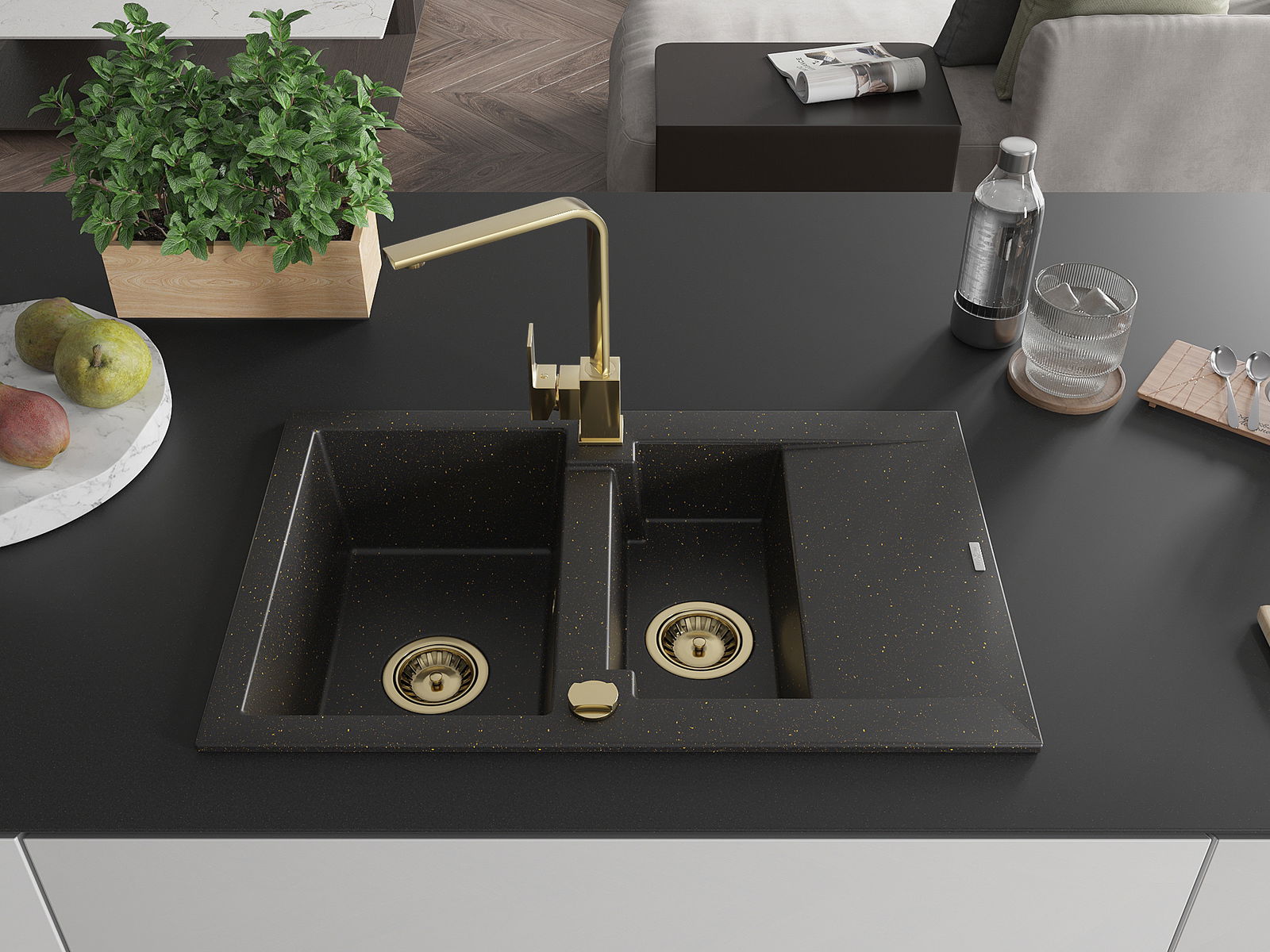 Mexen Gaspar granitinė 1,5 kamerų plautuvė su nusausintuvu ir virtuvės maišytuvu Rita, juoda/aukso - 6507-75-670300-50