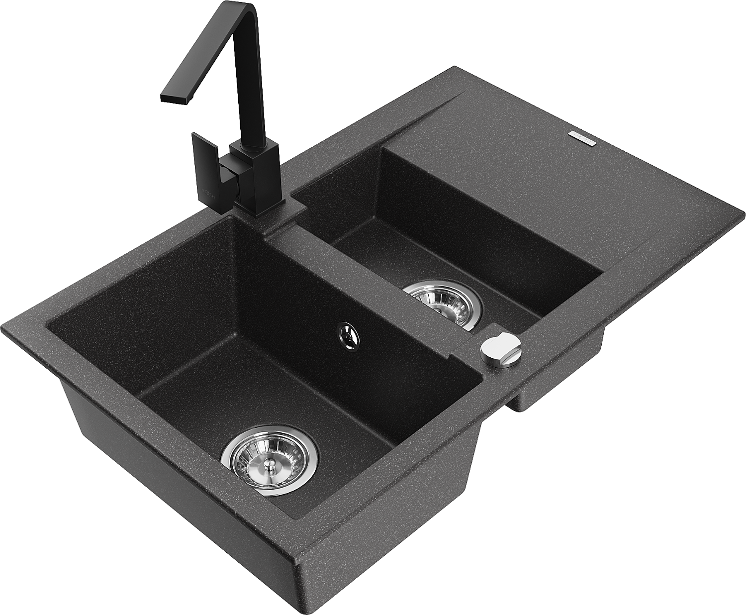 Mexen Gaspar granito plautuvė 1,5 kamerų su nusausintuvu ir virtuviniu maišytuvu Rita, juodas taškuotas - 6507-76-670300-70