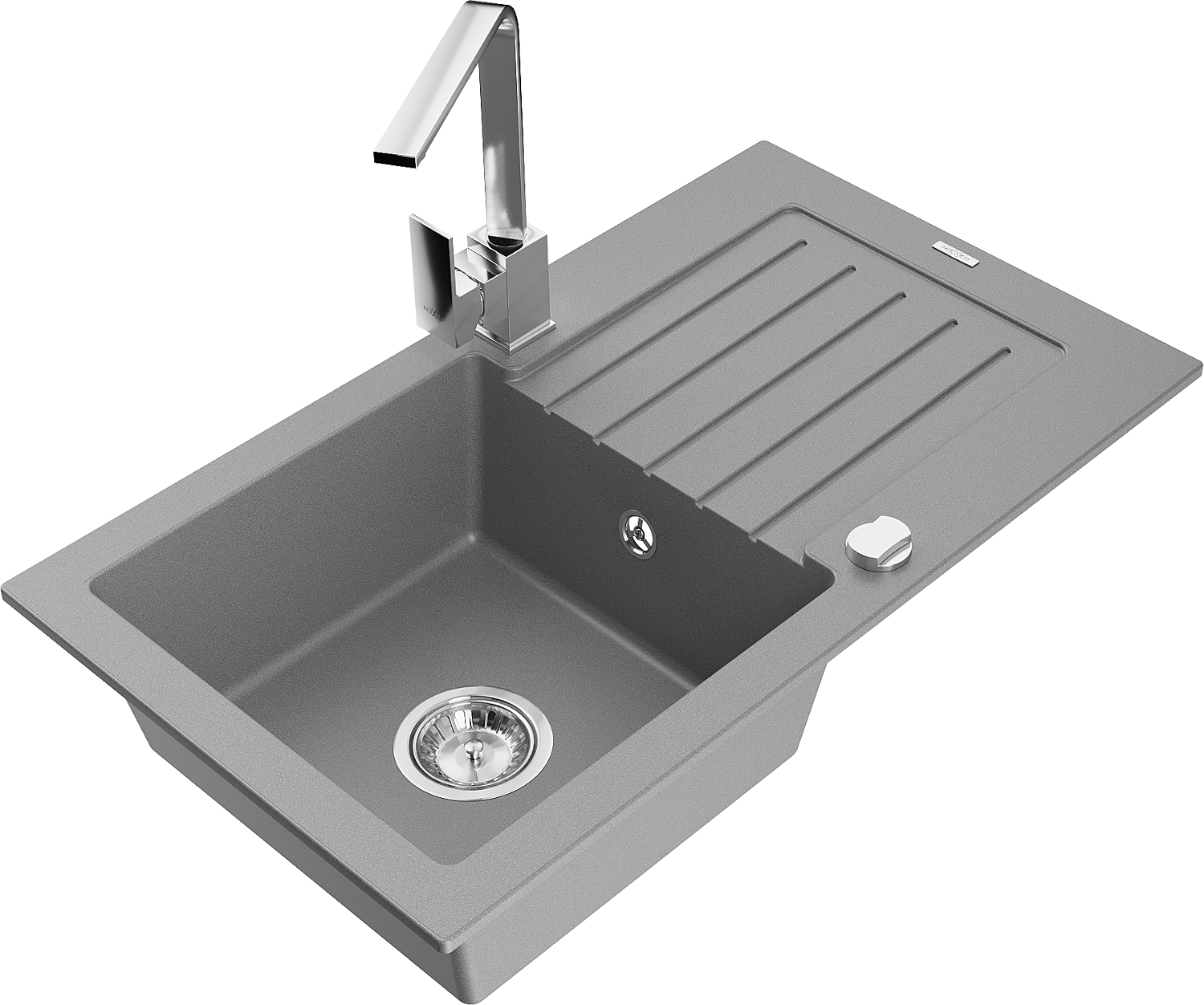 Mexen Pablo granitinė vienos kameros plautuvė su nusausintuvu ir virtuviniu maišytuvu Rita, pilkas - 6510-71-670300-00