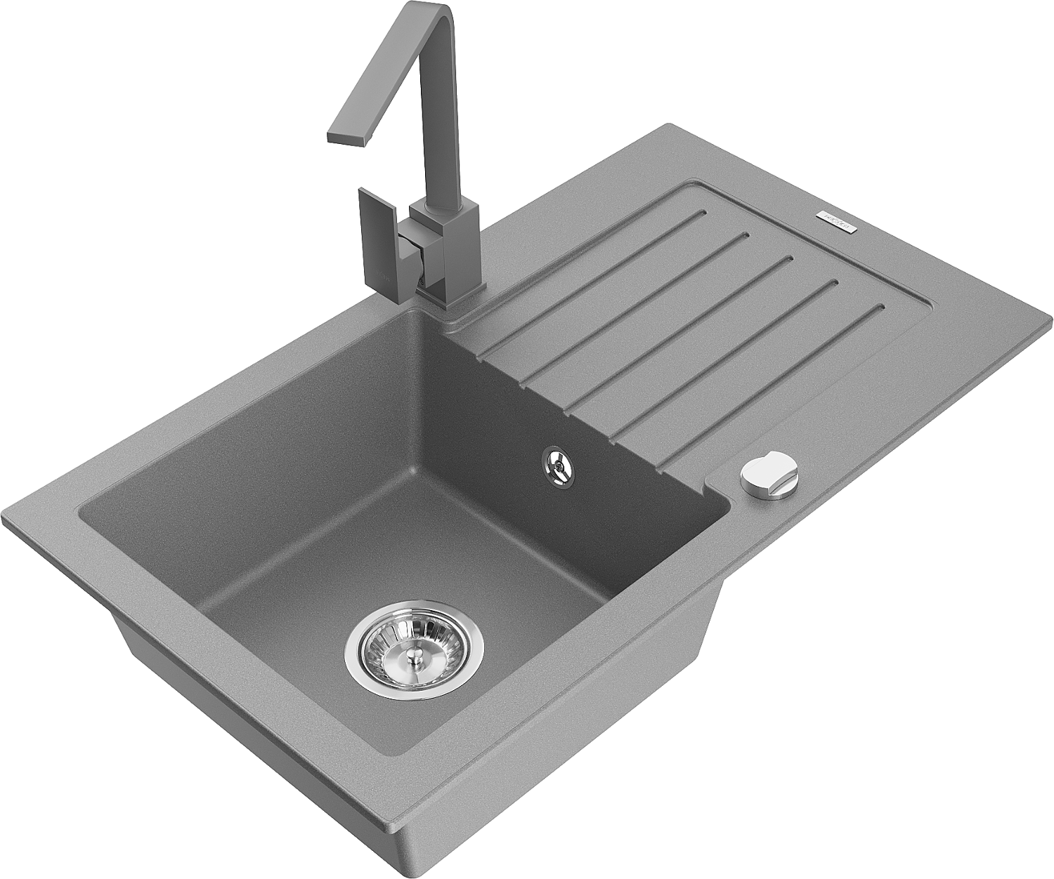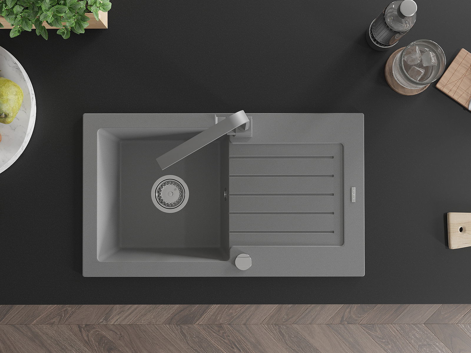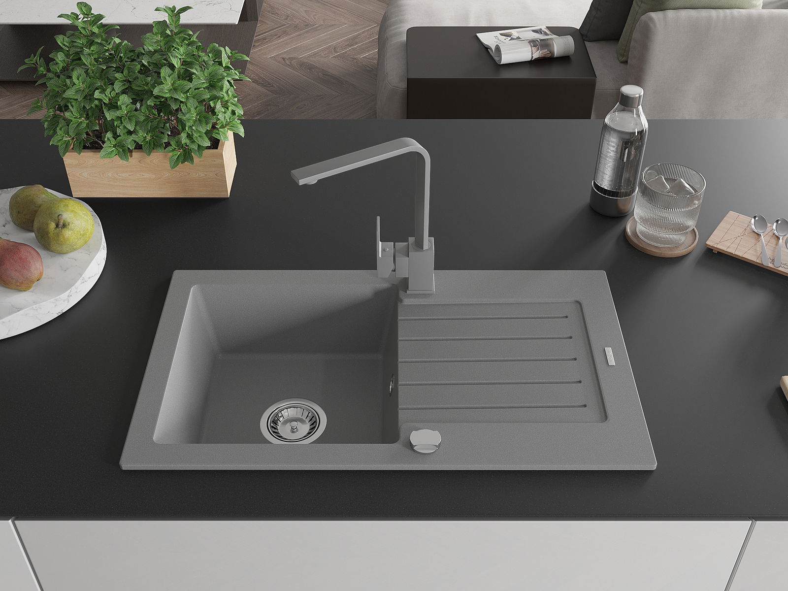 Mexen Pablo granitinė vieno dubens plautuvė su nusausintuvu ir virtuves kranu Rita, pilka - 6510-71-670300-71