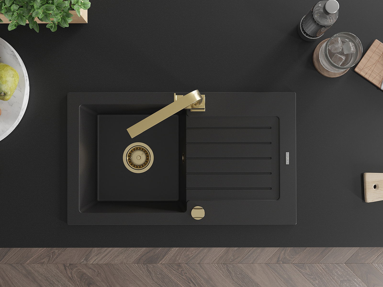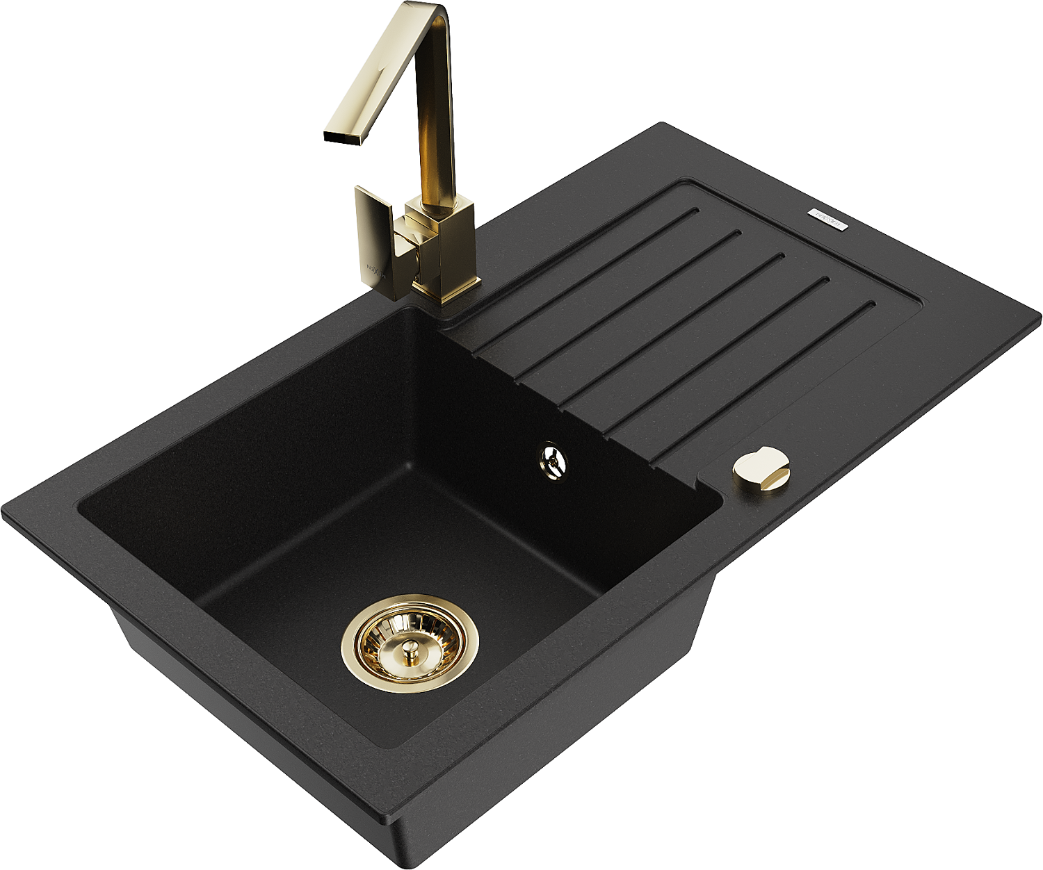 Mexen Pablo vienos kameros granitinė plautuvė su nutekamąja dalimi ir virtuviniu maišytuvu Rita, juoda - 6510-77-670300-50
